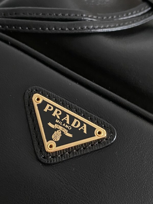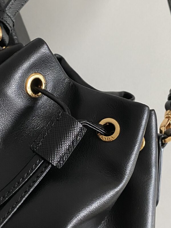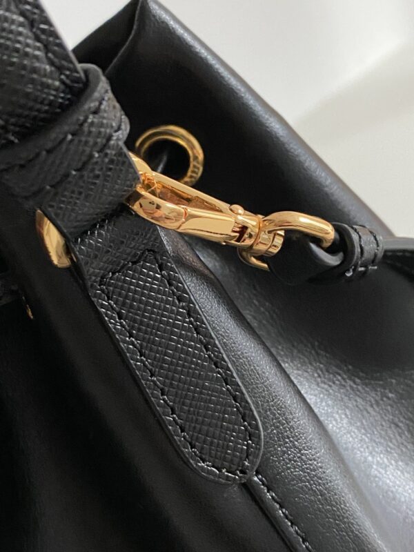 프라다의 니론 미니 물통백은 고급스러운 블랙 컬러로 어떤 스타일에도 잘 어울립니다.