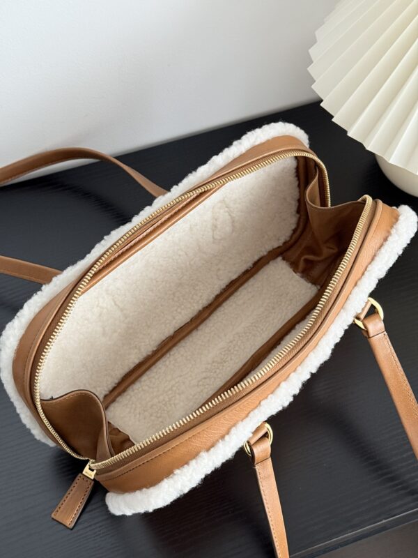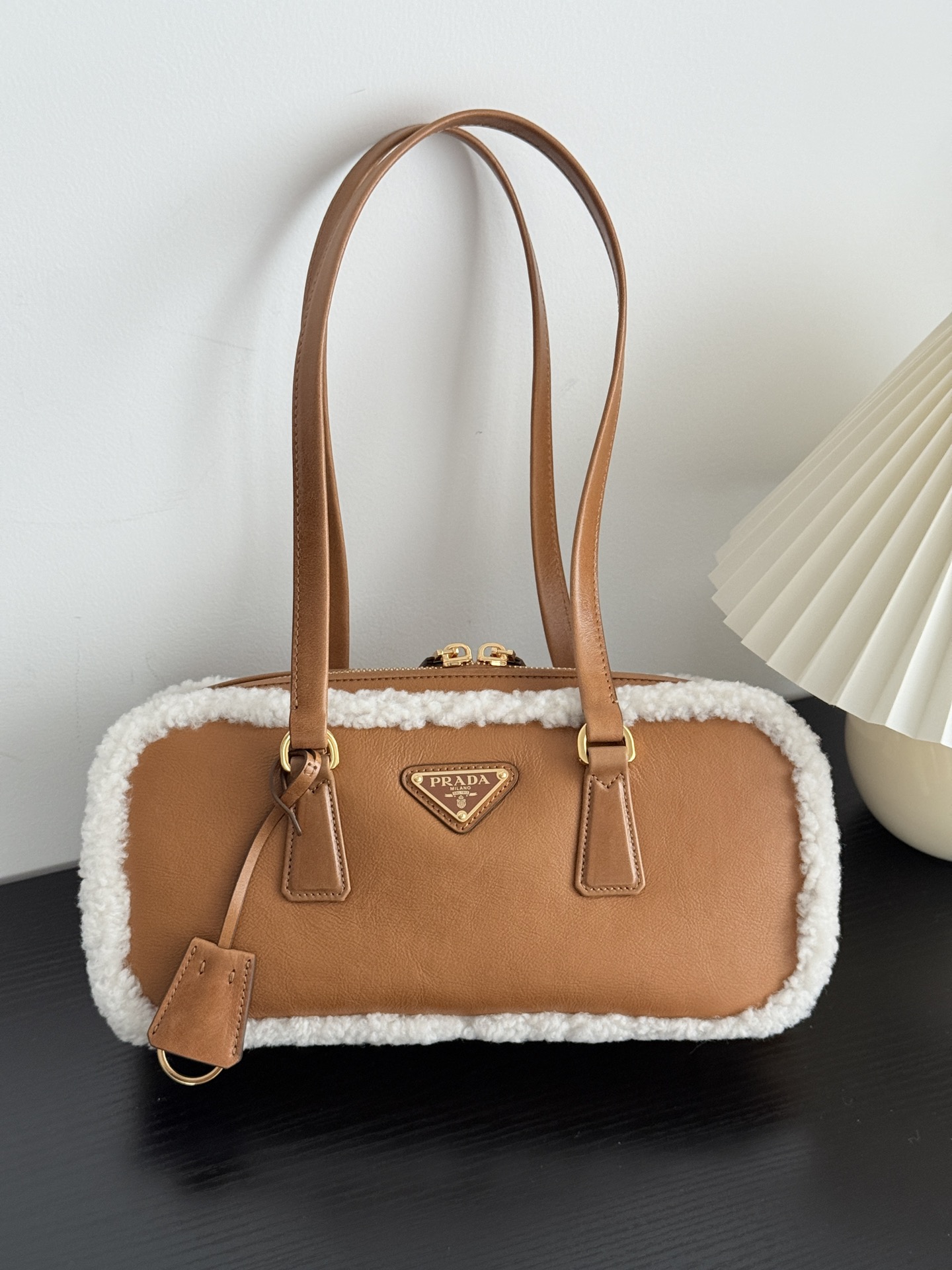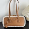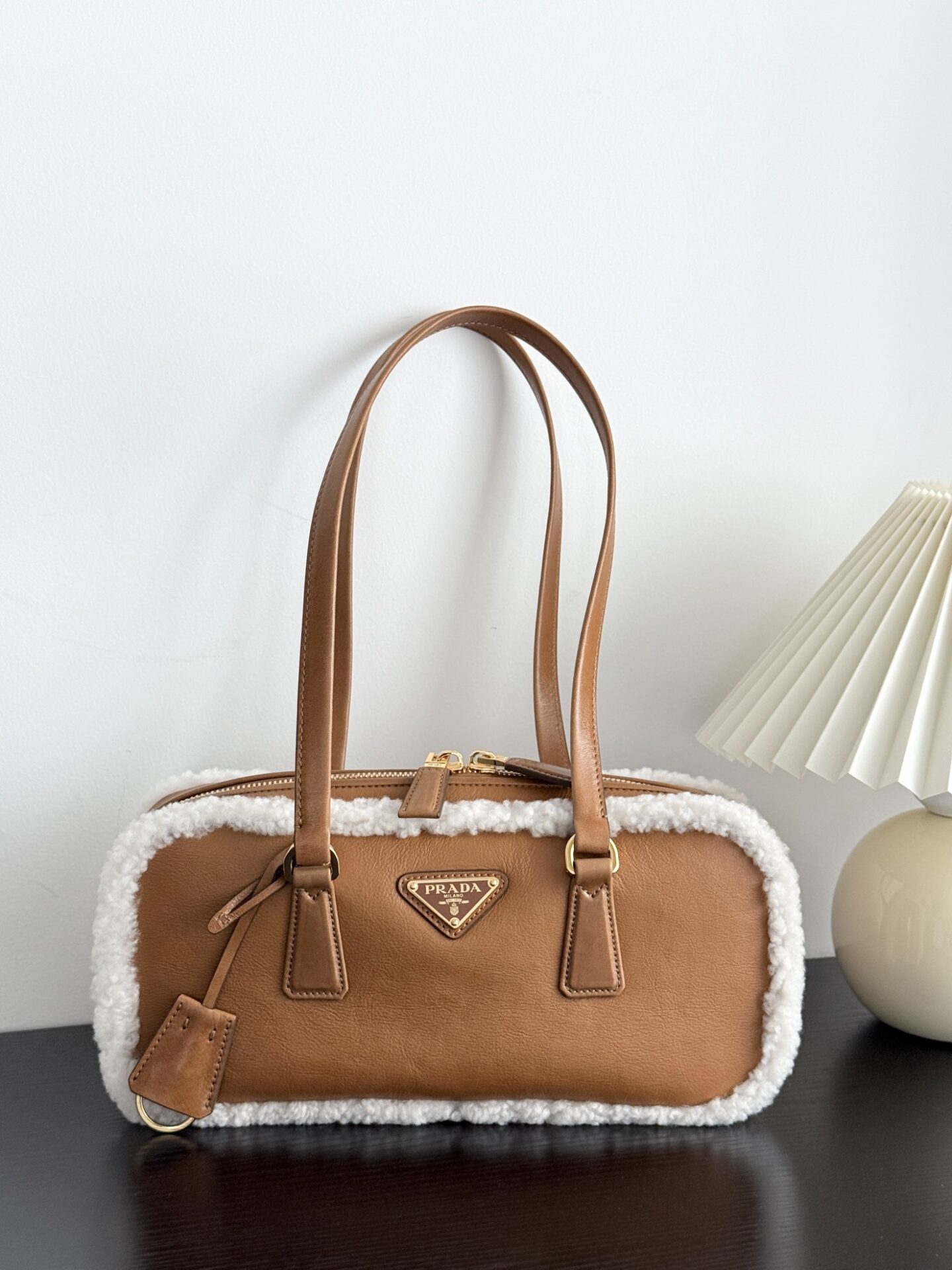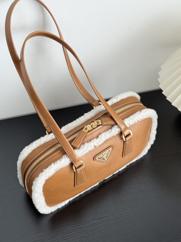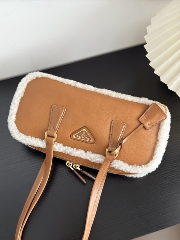 프라다의 메리노 양가죽 토트백은 부드러운 양가죽과 포근한 양모가 조화를 이루어 따뜻한 겨울 감성을 전합니다.