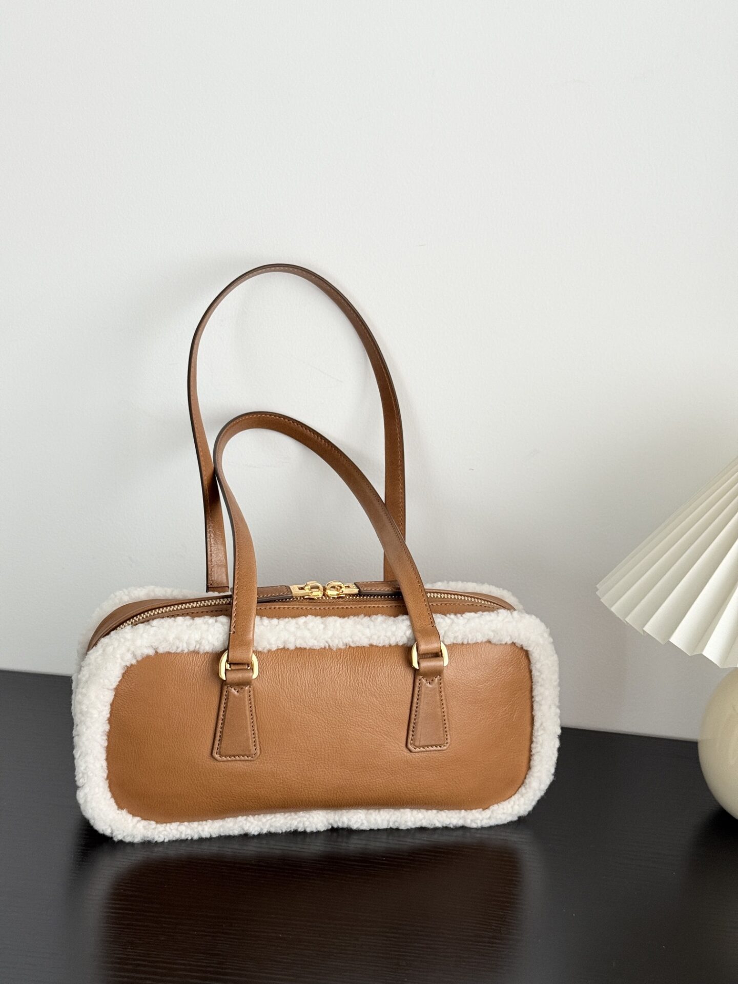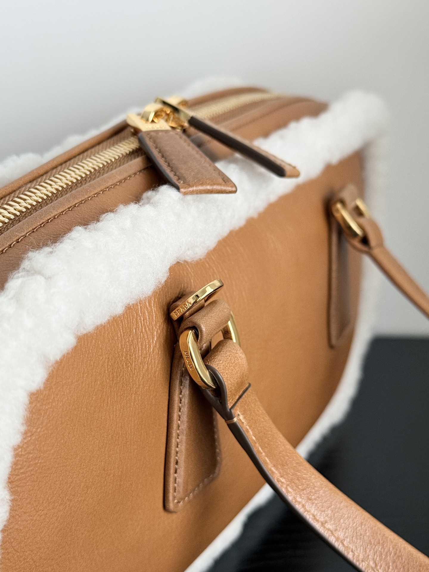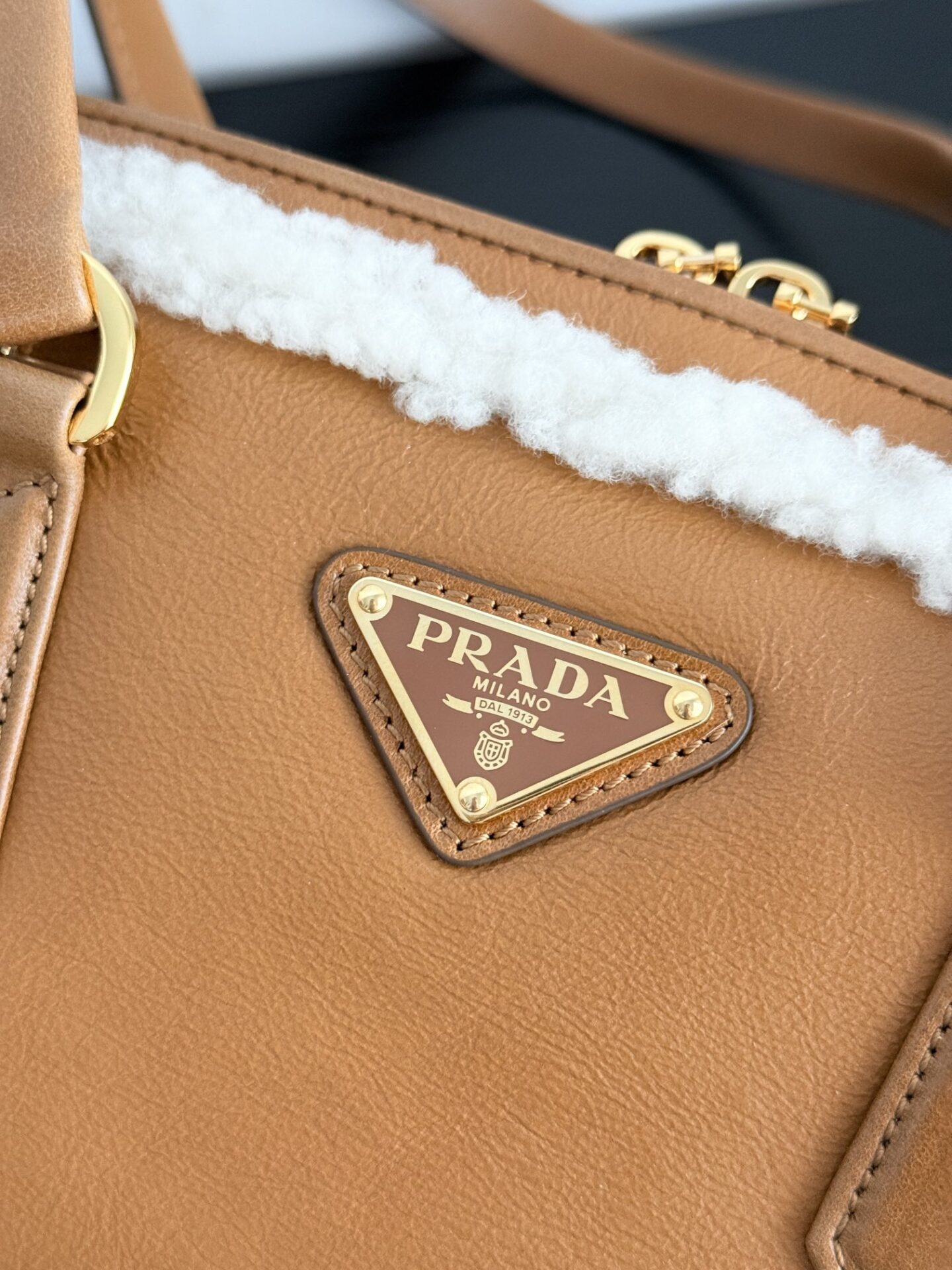 프라다의 메리노 양가죽 토트백은 부드러운 양가죽과 포근한 양모가 조화를 이루어 따뜻한 겨울 감성을 전합니다.