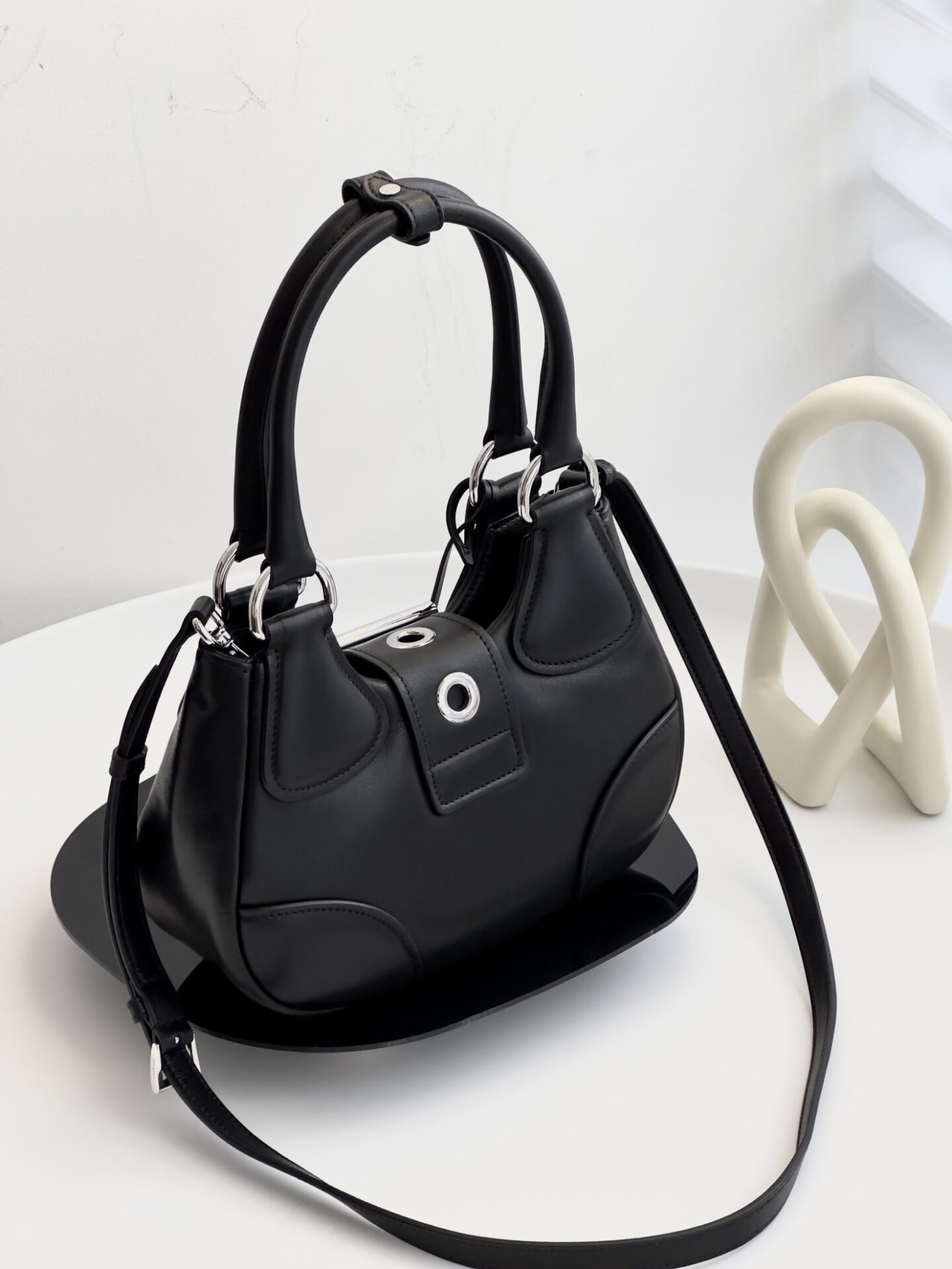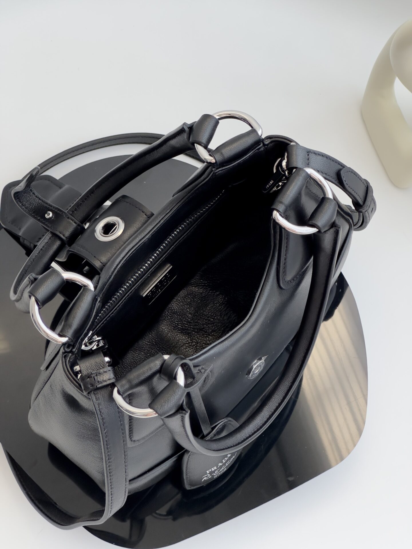 프라다의 새로운 문 백은 빈티지하면서도 세련된 매력을 지닌 아이템입니다.