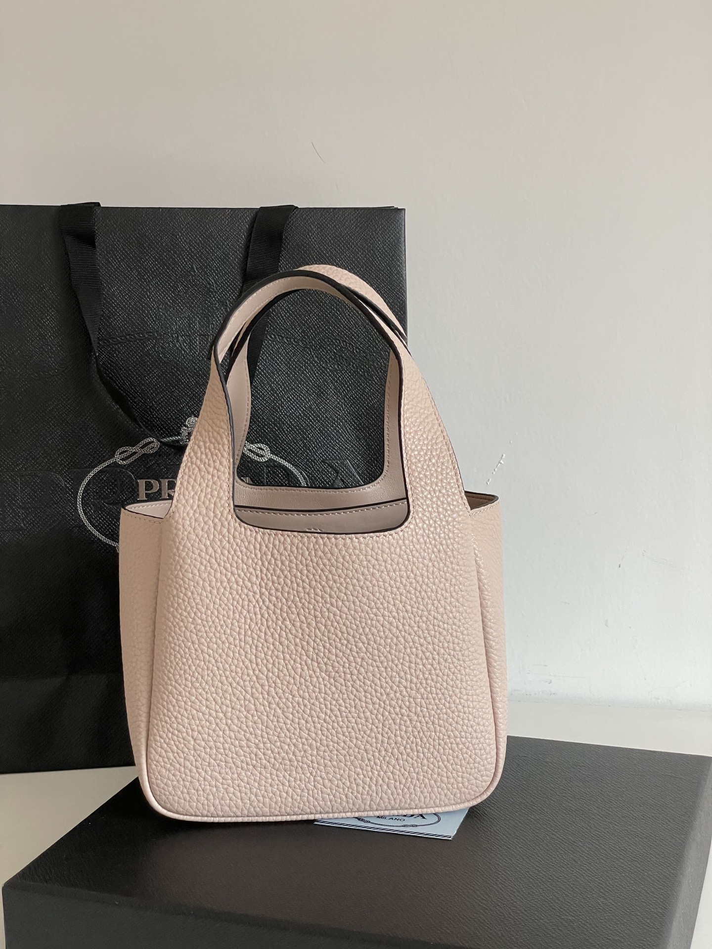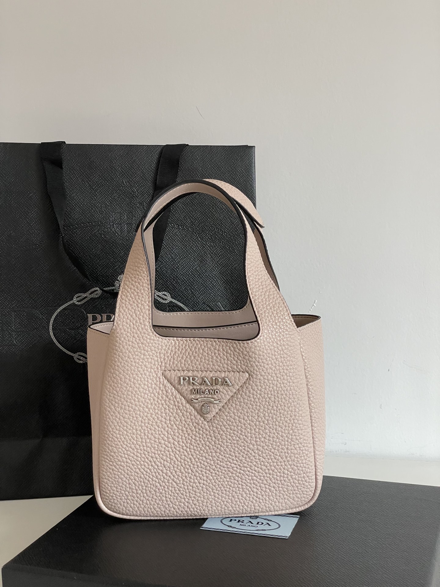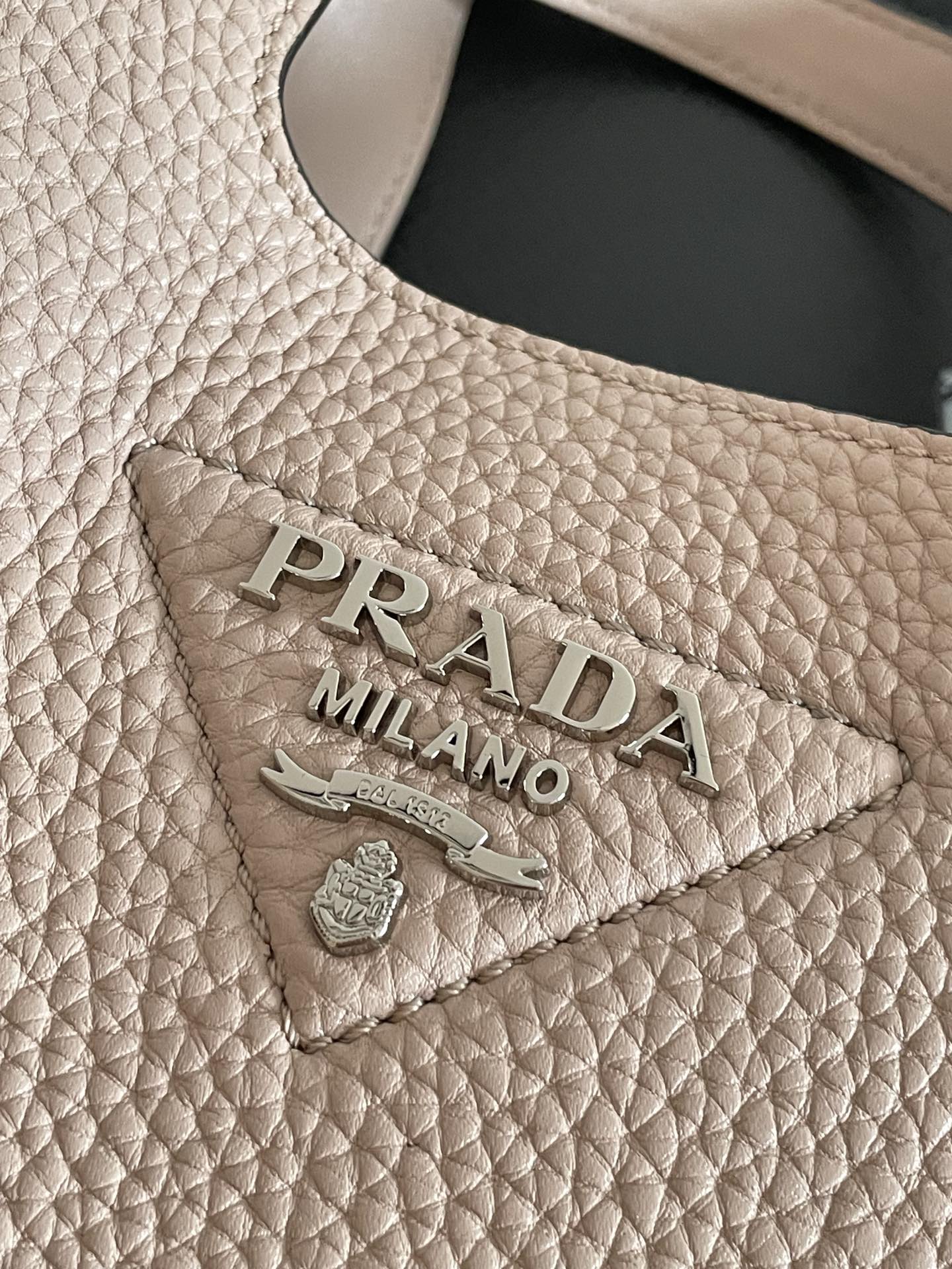 프라다의 미니菜篮子는 이탈리아 자연 가공된 소가죽으로 제작되어 고급스러운 질감을 자랑합니다.