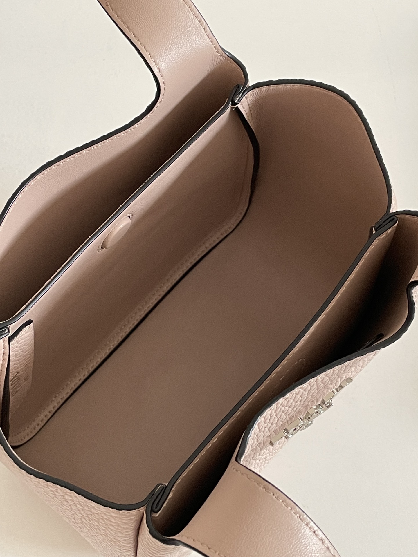 부드러운 양가죽 안감과 함께 두 개의 손잡이가 있어 편안한 착용감을 제공합니다. 금속 로고가 포인트로 더해져 세련된 디자인을 완성합니다.