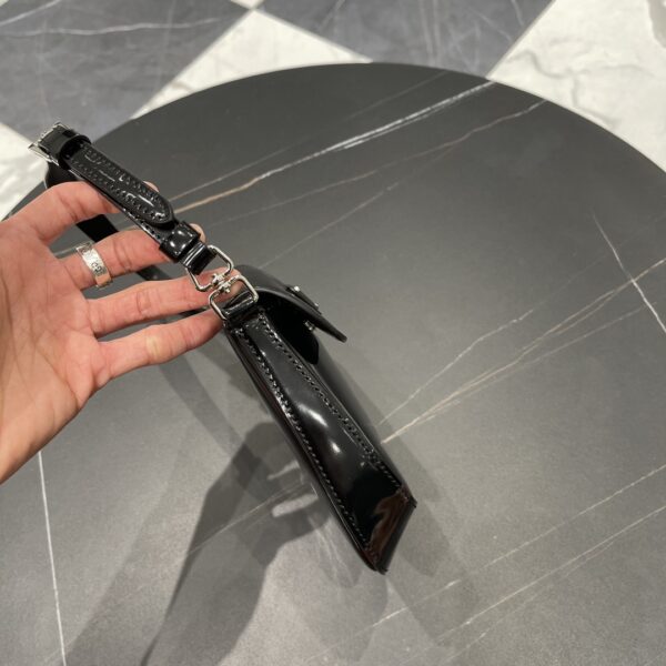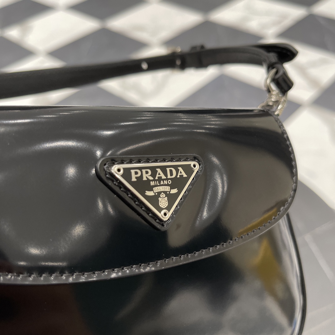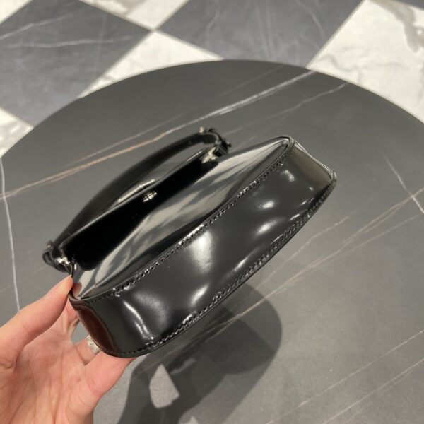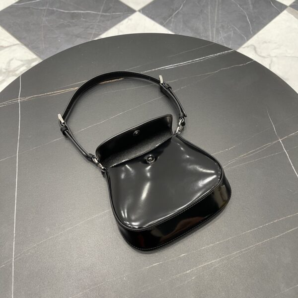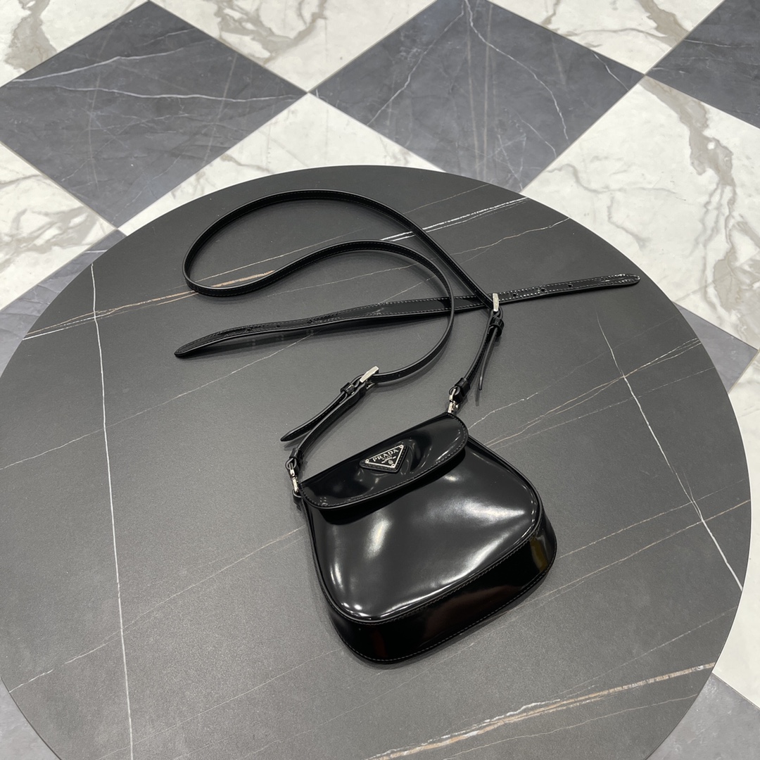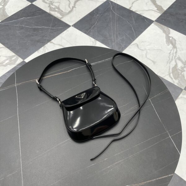 프라다의 미니 클레오 백은 고광택 가죽으로 제작되어 세련된 매력을 더합니다.