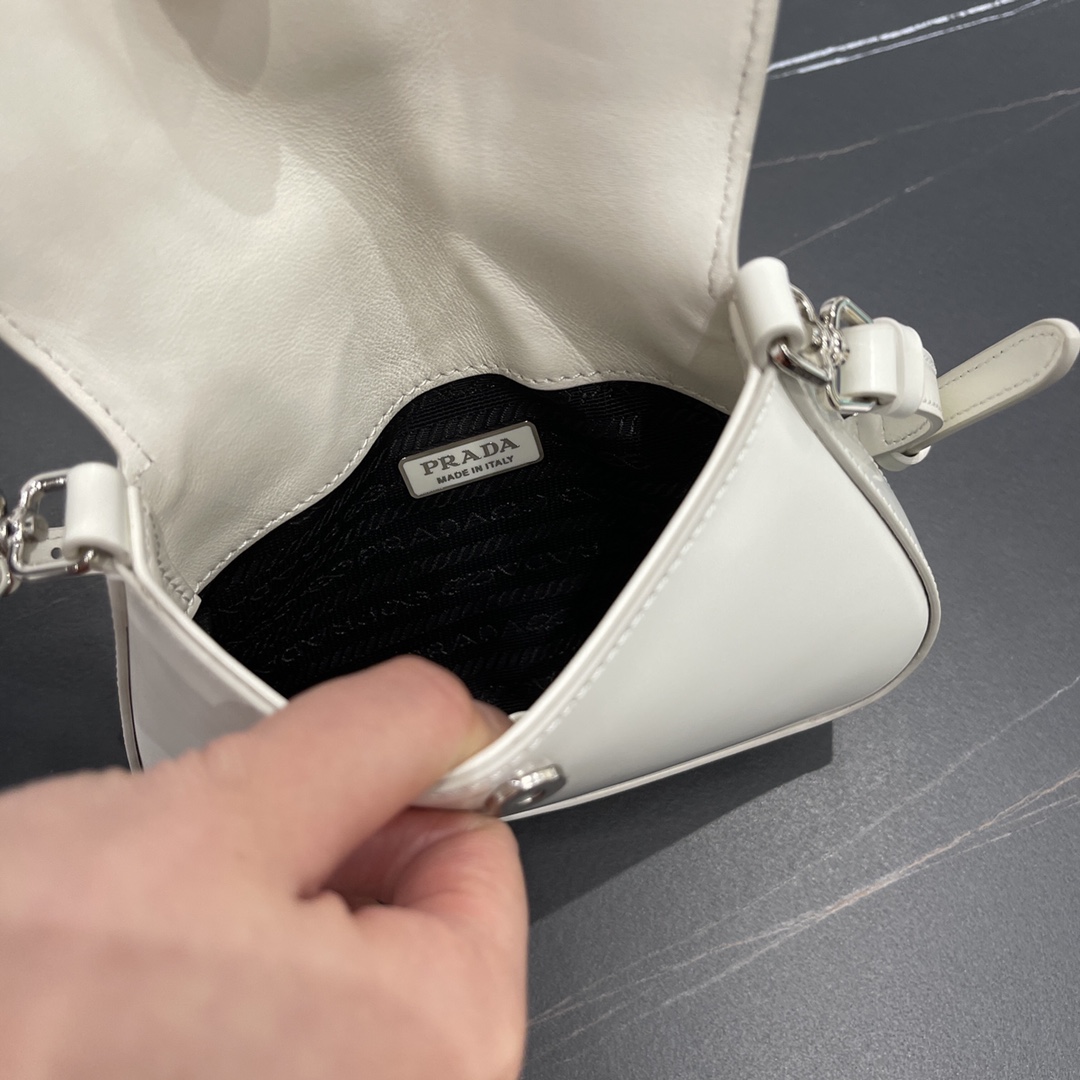 프라다의 미니 클레오 백은 세련된 디자인과 실용성을 겸비한 아이템입니다. 고급스러운 수입 원단과 스틸 하드웨어가 조화를 이루어 클래식하면서도 현대적인 매력을 발산합니다.