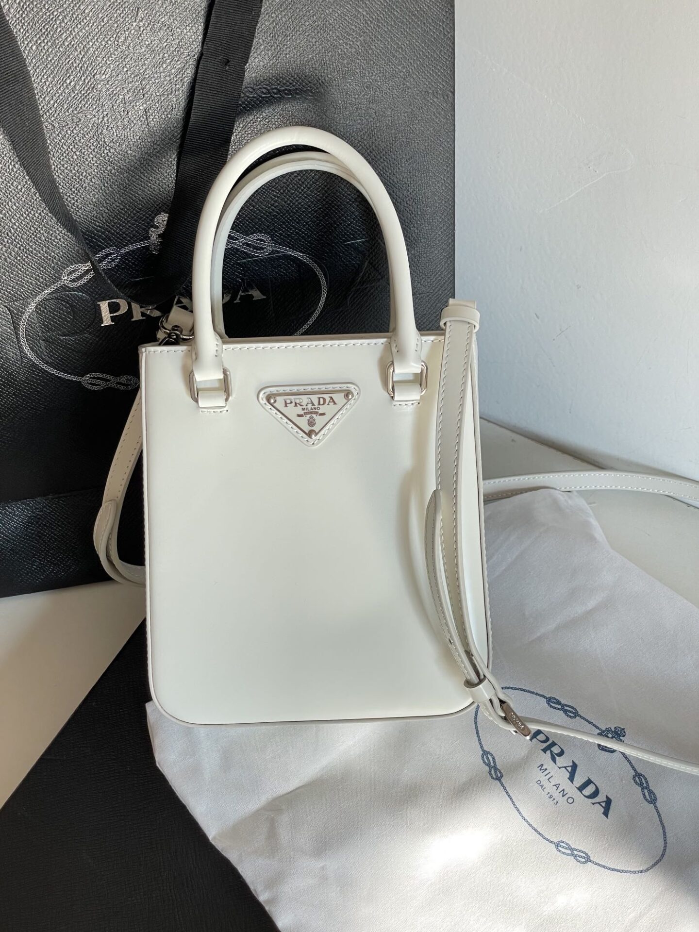프라다의 최신 미니 토트백은 간결한 디자인이 매력적입니다.