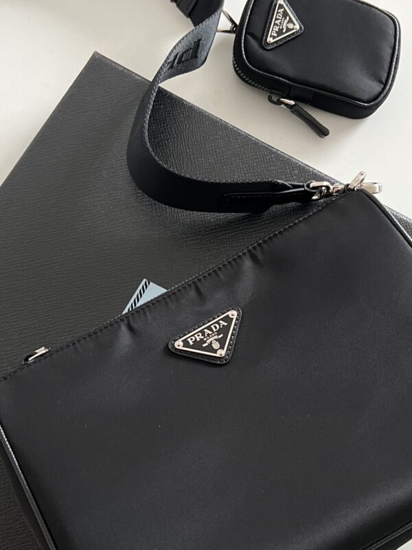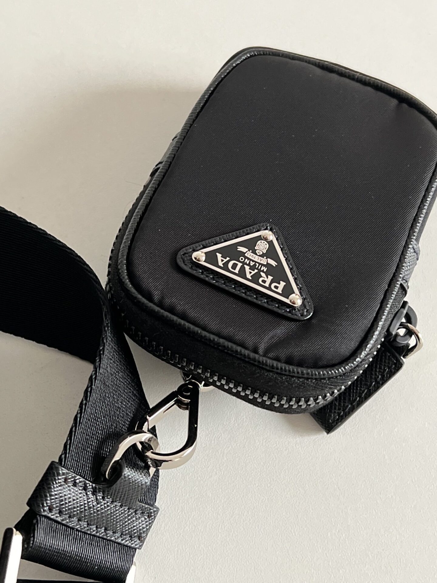 프라다의 다용도 나일론 숄더백입니다. 고급 나일론 소재로 제작되어 내구성이 뛰어나며, 세련된 디자인이 돋보입니다.