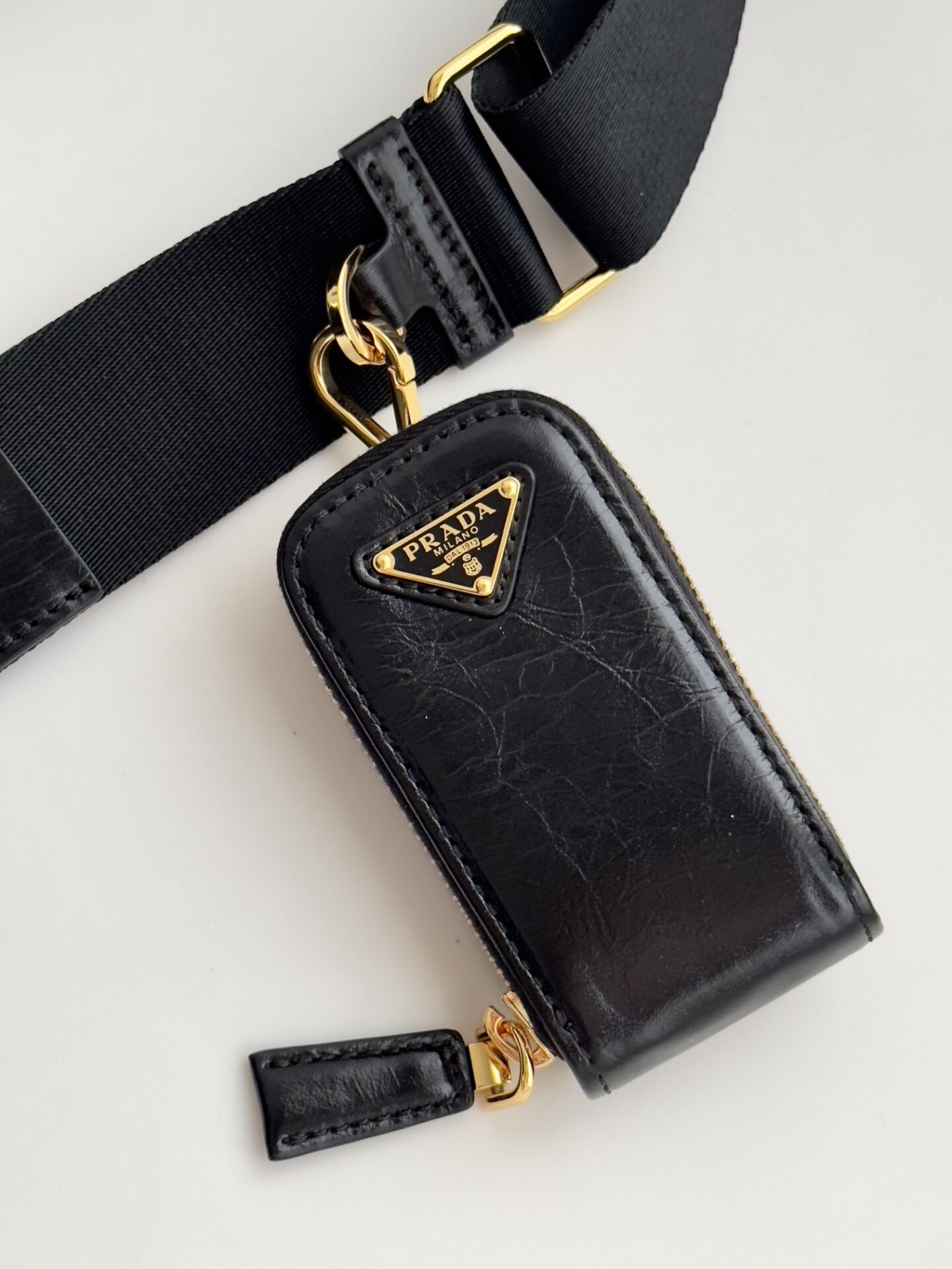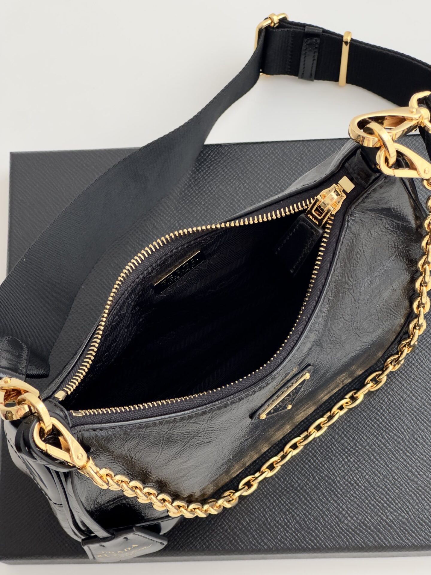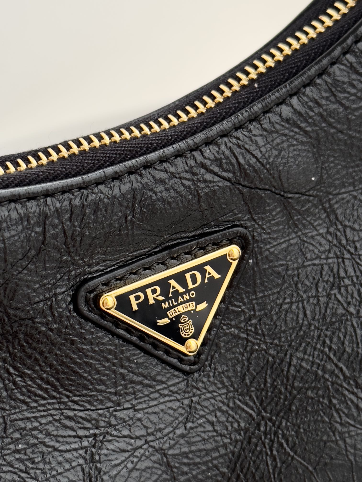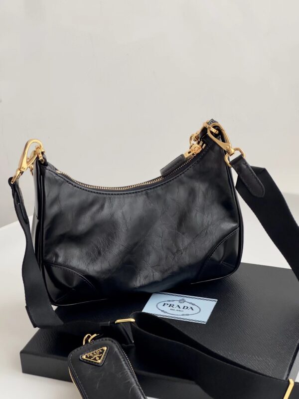프라다의 삼합일 오일 왁스 가죽 백은 독특한 질감과 세련된 디자인이 돋보입니다.
