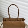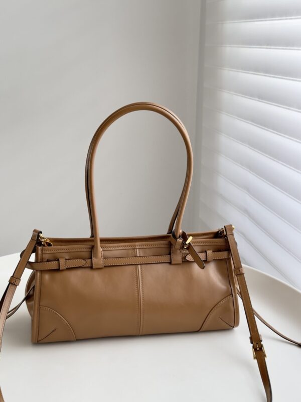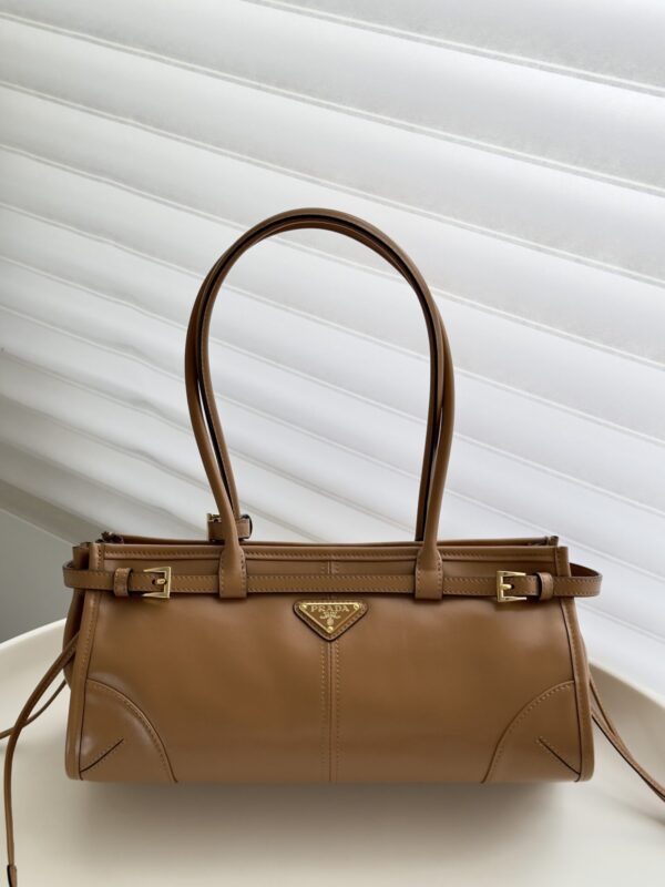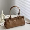 프라다의 소프트 럭스 미니 백은 빈티지 바게트 스타일로, 오일 왁스 가죽 소재로 제작되어 내구성이 뛰어납니다.