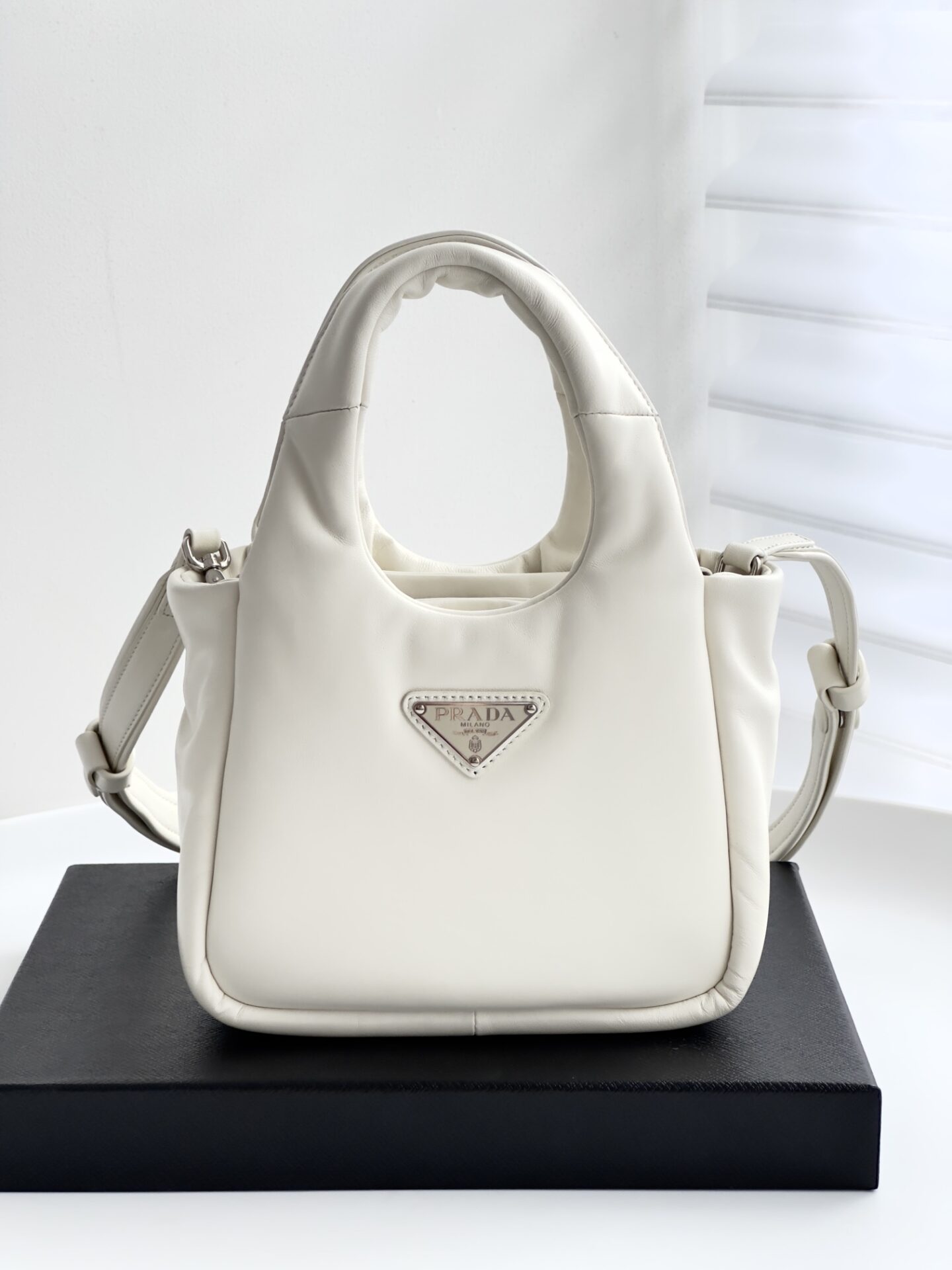 프라다의 소프트 백은 부드러운 양가죽으로 제작되어 뛰어난 질감을 자랑합니다.