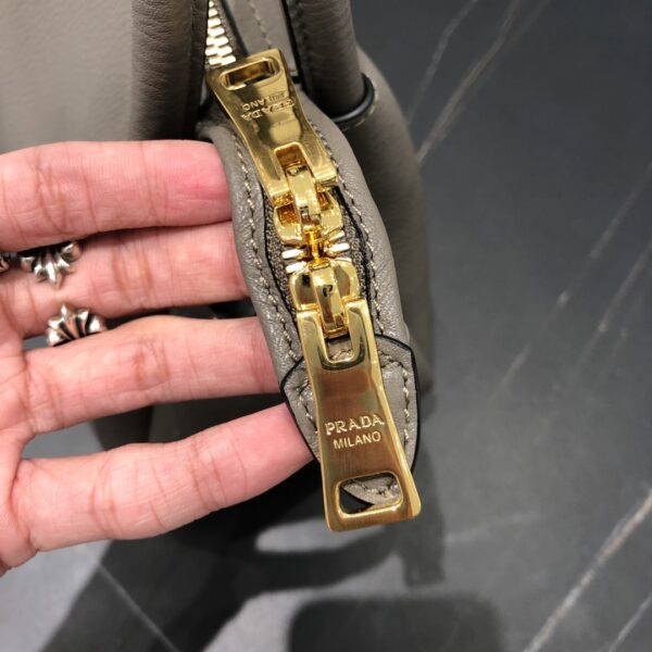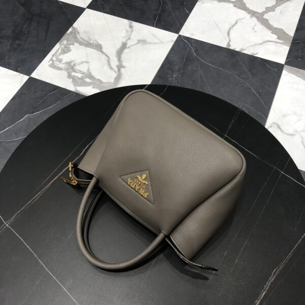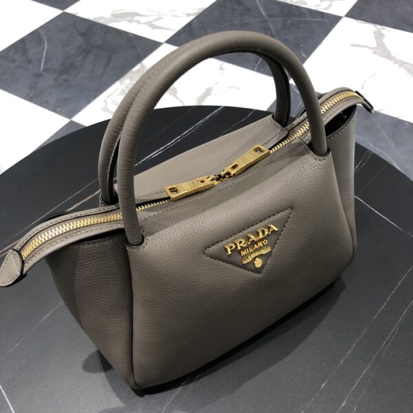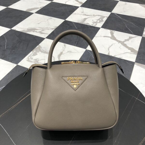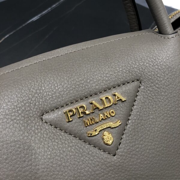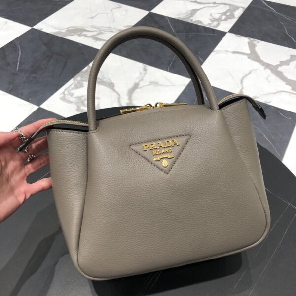 부드러운 수입 소가죽으로 제작된 프라다 신상 핸드백입니다. 독특한 라이트 그레이 색상과 함께, 라임 질감이 더해져 편안한 착용감을 제공합니다.