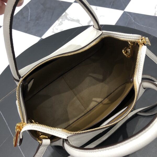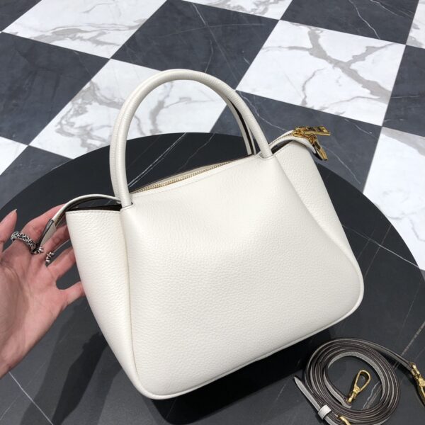 부드러운 곡선의 실루엣과 더불어, 이중 손잡이와 이중 지퍼 디자인이 독특한 매력을 더합니다. 고급 양가죽 안감과 함께 하나의 수납 공간과 두 개의 포켓이 있어 실용성 또한 뛰어납니다.