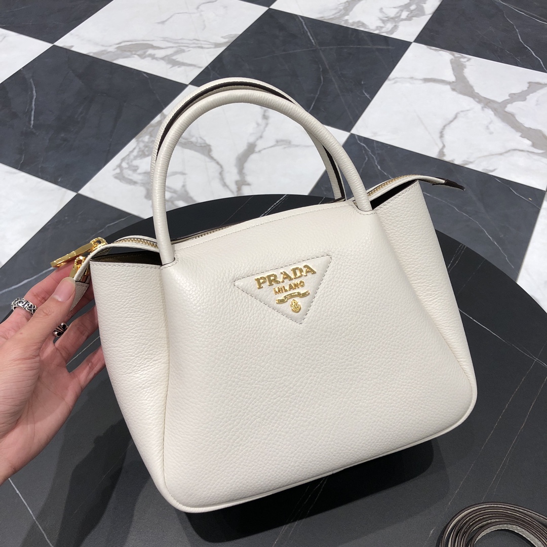 세련된 브러시드 스테인리스 스틸 하드웨어와 독창적인 삼각형 로고가 조화를 이루며, 브랜드의 장인 정신을 잘 표현하고 있습니다.