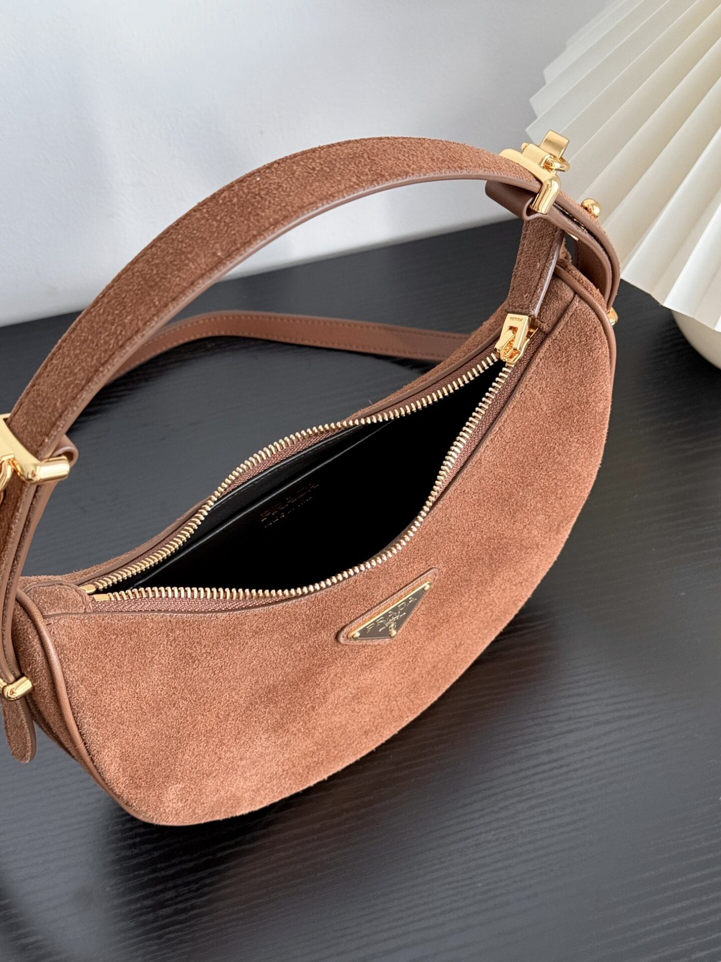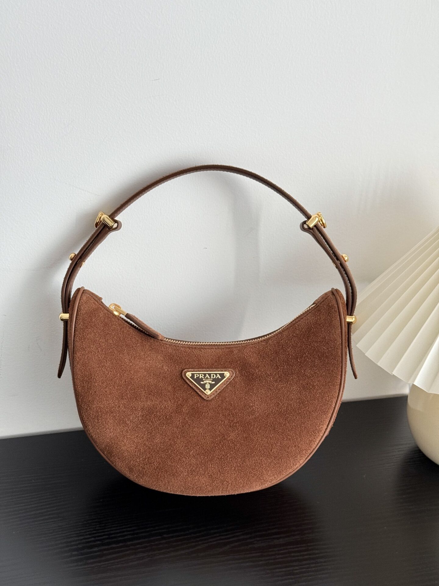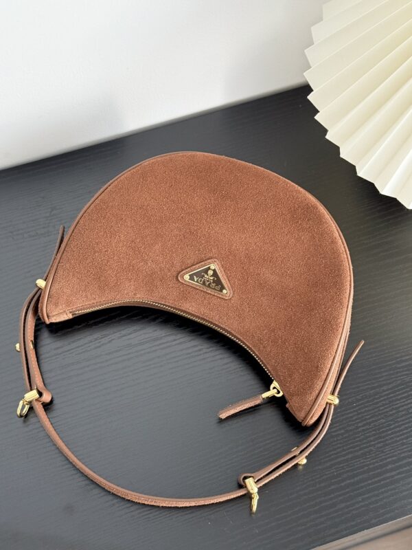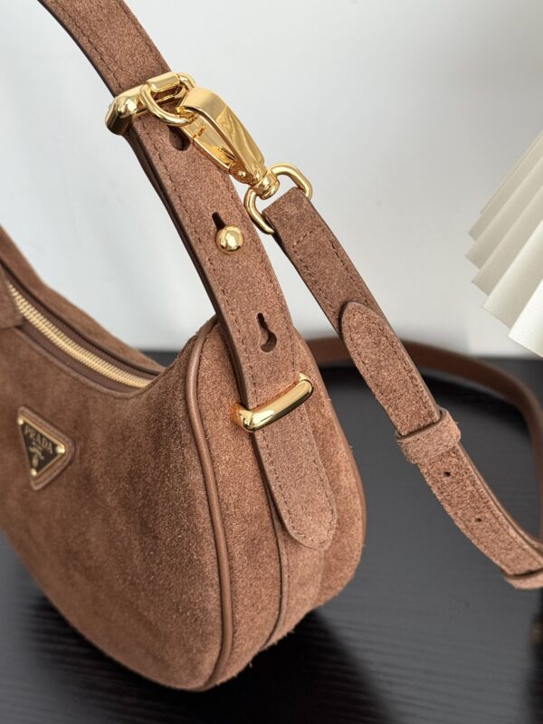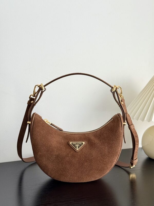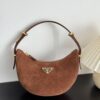프라다 아르크 백은 부드러운 스웨이드 소재로 제작되어 고급스러운 질감을 자랑합니다.