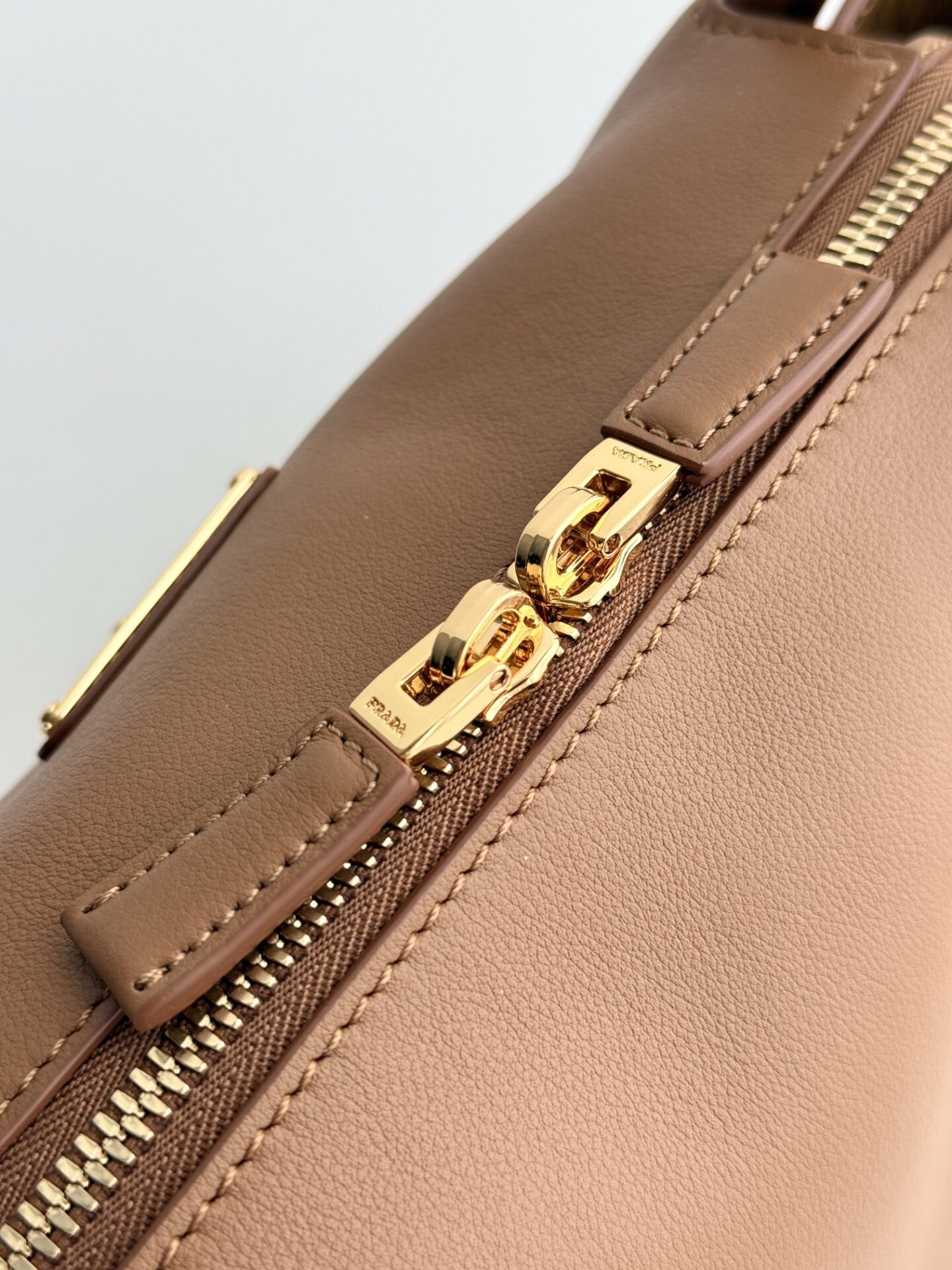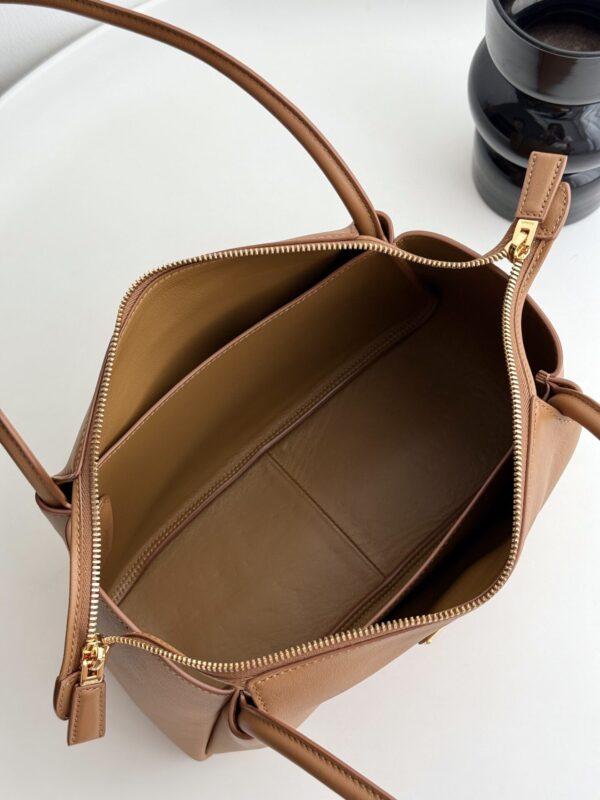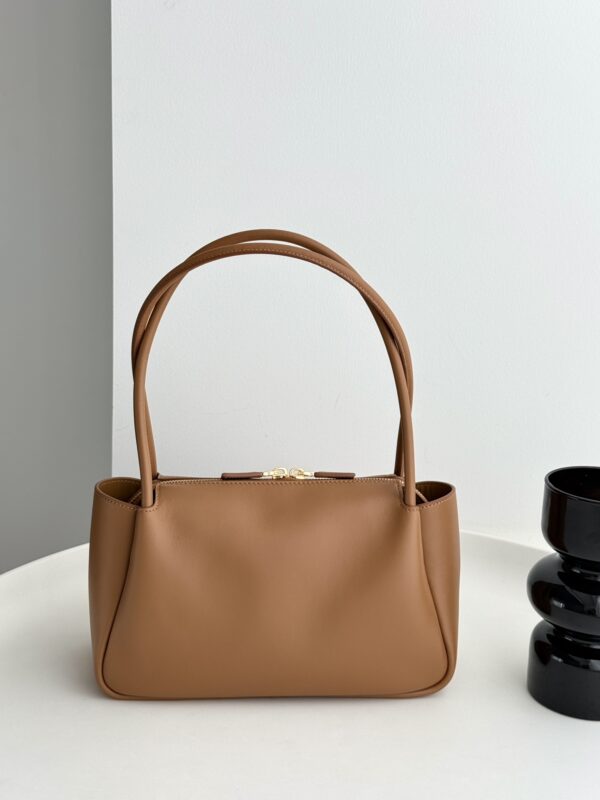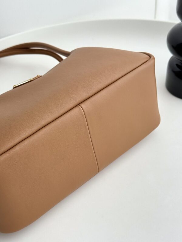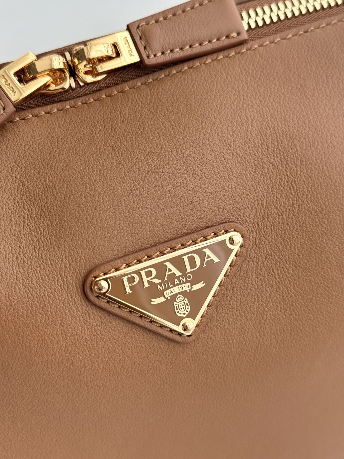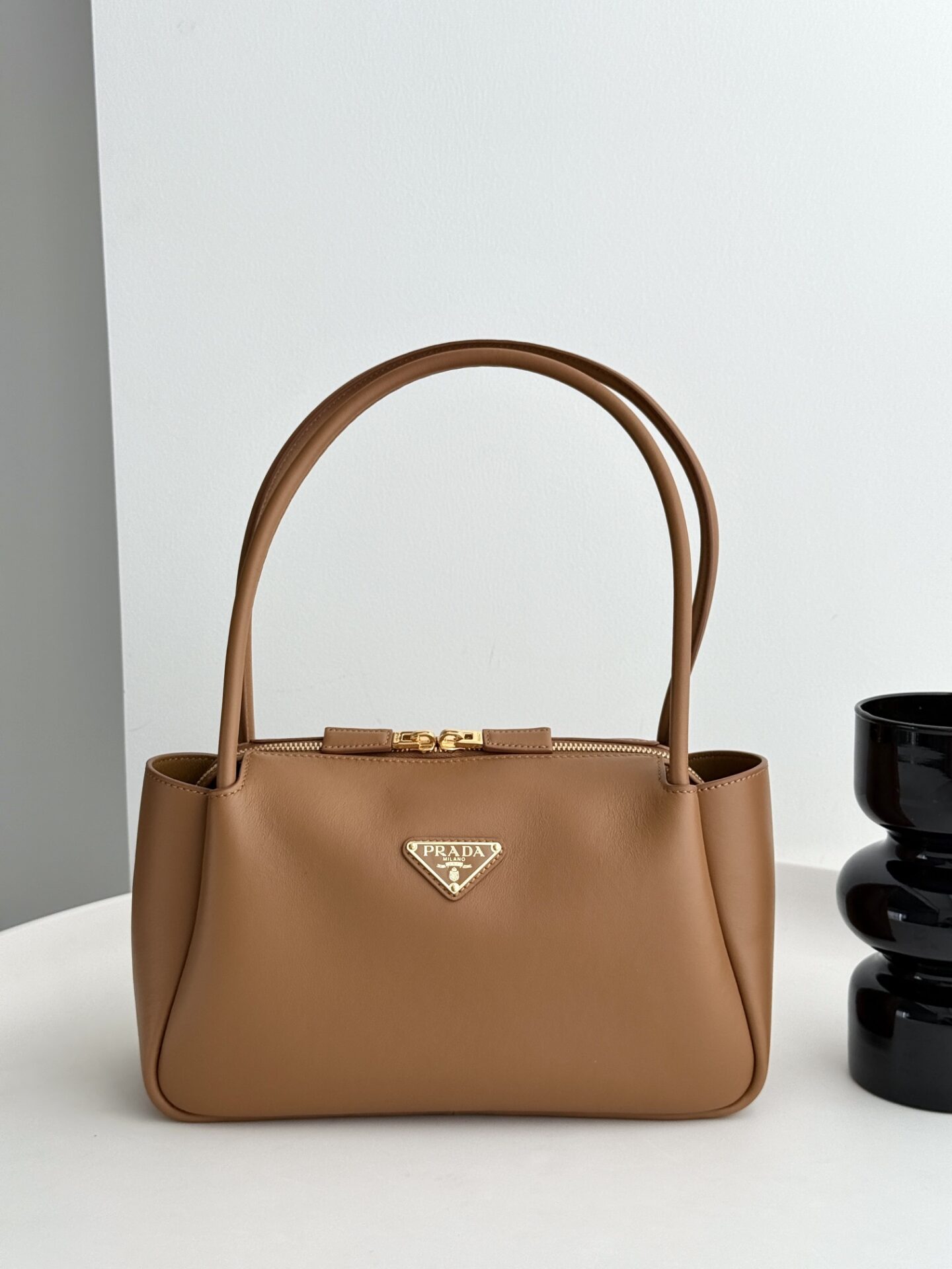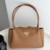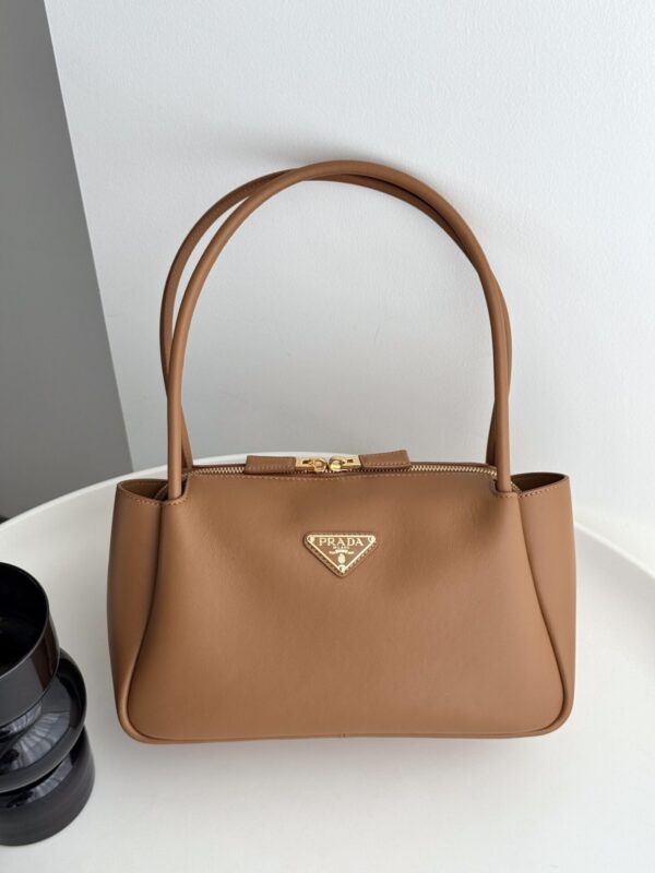 프라다의 새로운 어깨백은 세련된 디자인과 고급스러운 소가죽 소재로 제작되었습니다.
