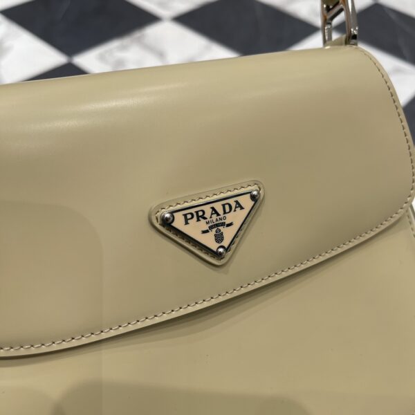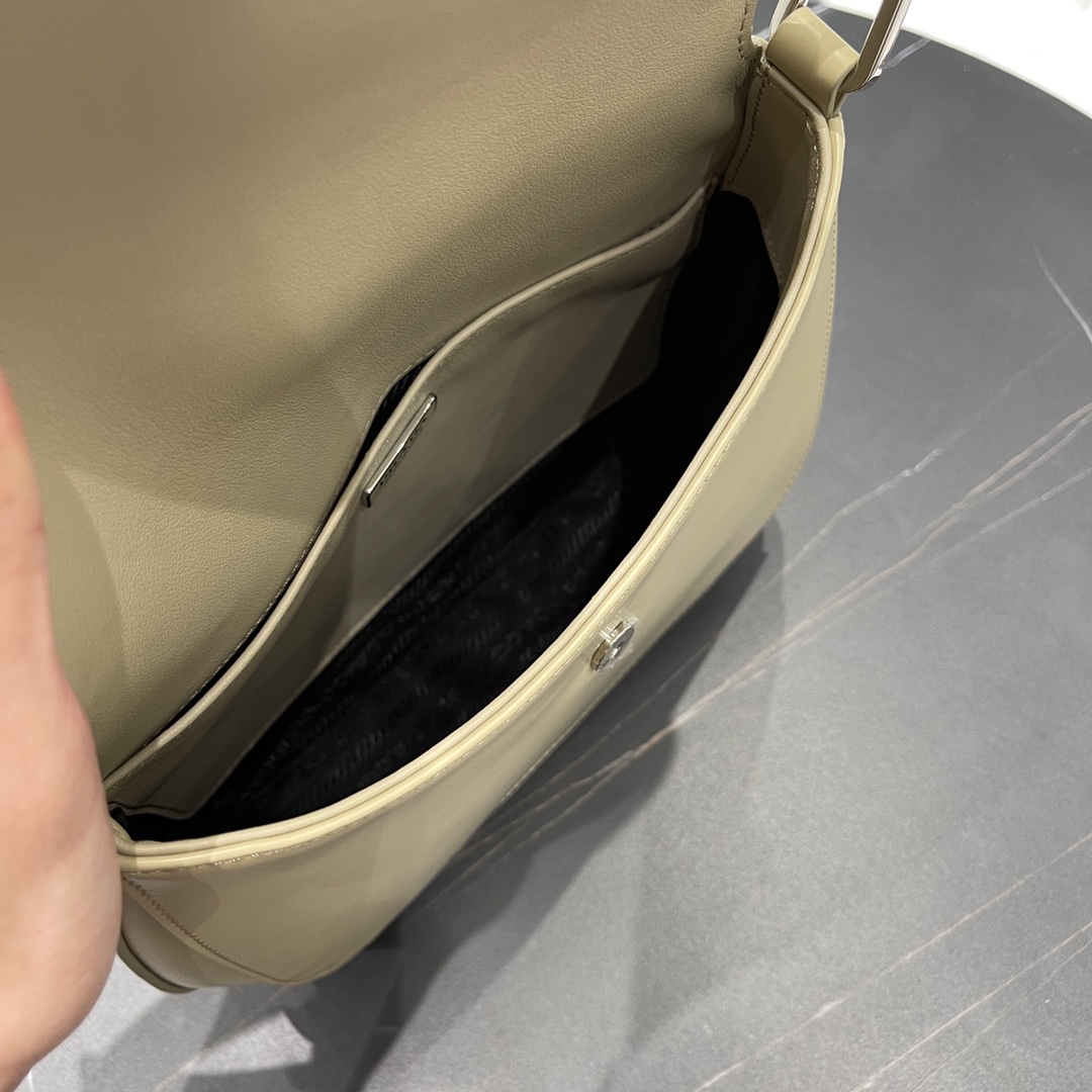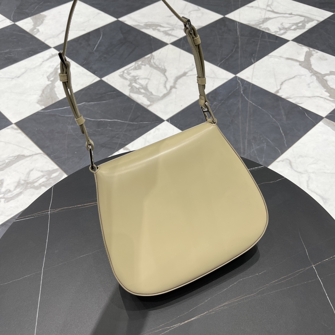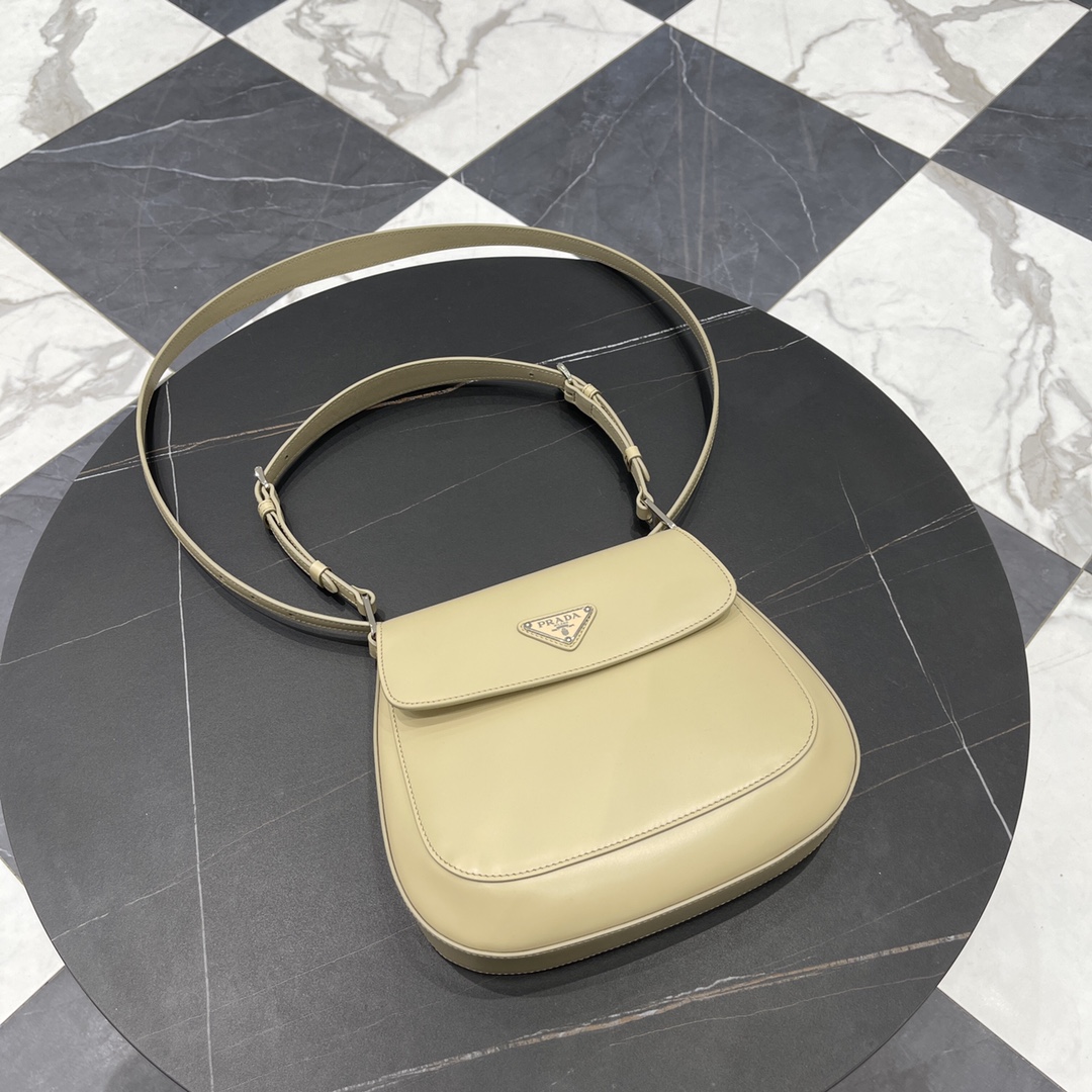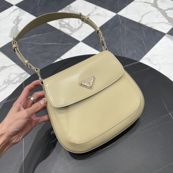 프라다 클레오 대형 플랩 숄더백은 독특한 경량 디자인으로 세련된 곡선을 강조합니다.