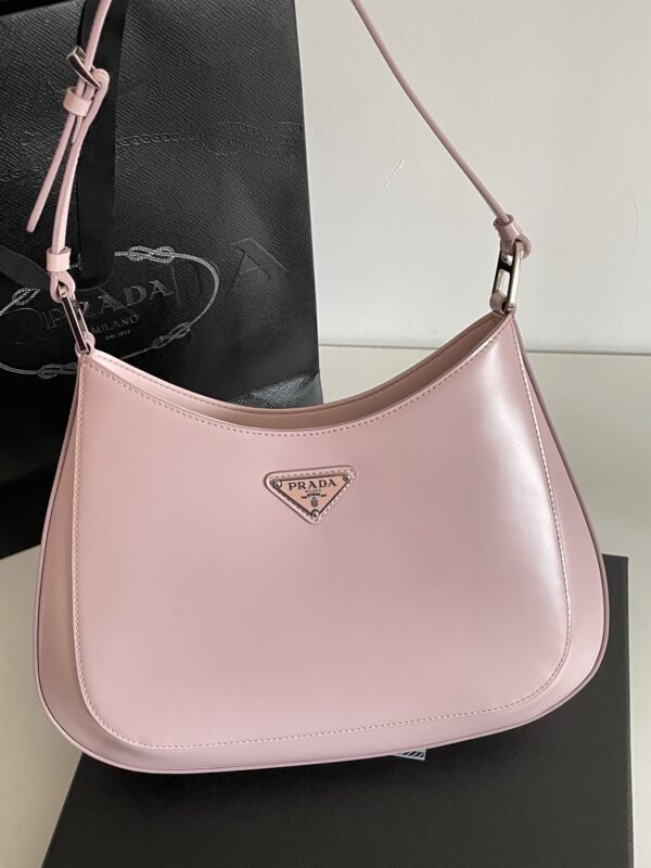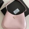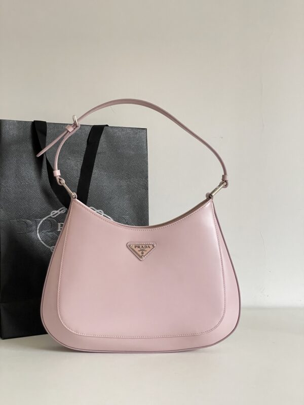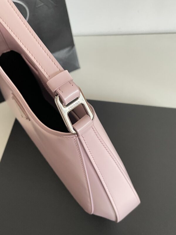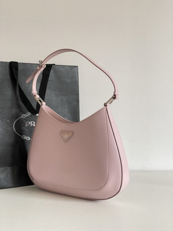 프라다의 클레오 대형 호보백은 독특한 디자인으로 시선을 사로잡습니다. 부드러운 핑크 색상의 소가죽으로 제작되어 고급스러운 질감을 자랑합니다.