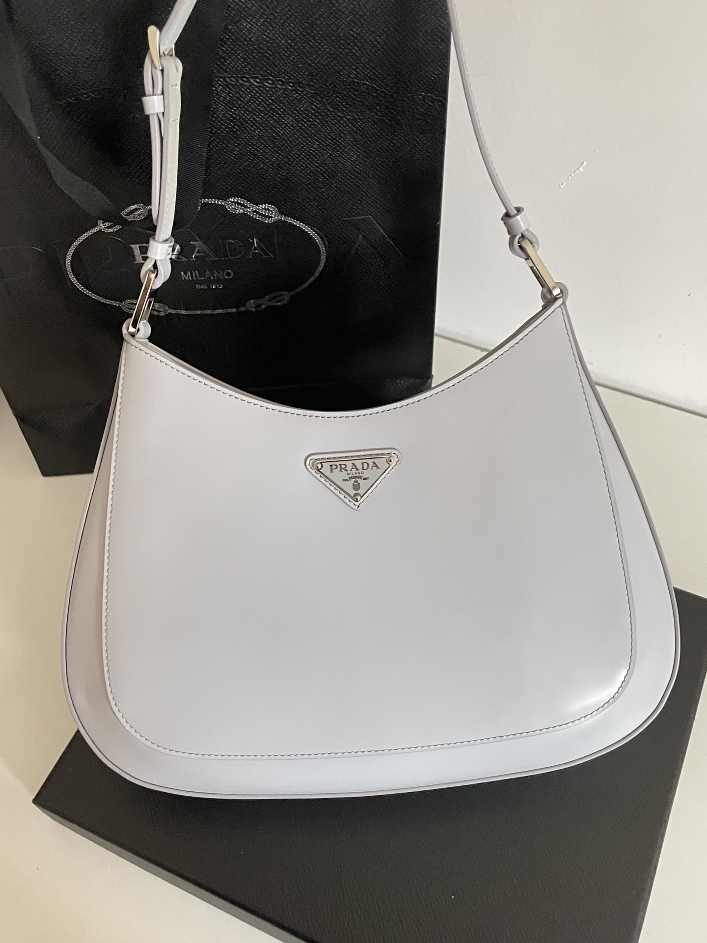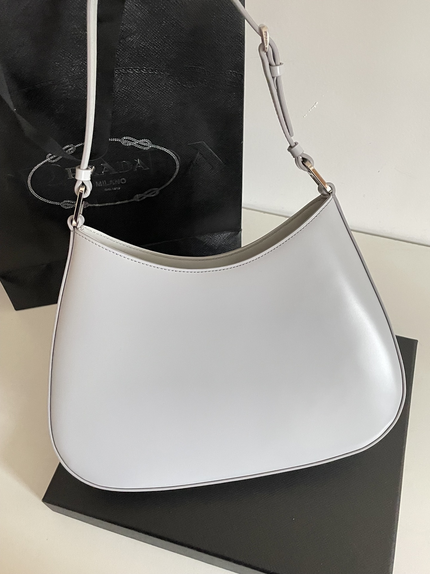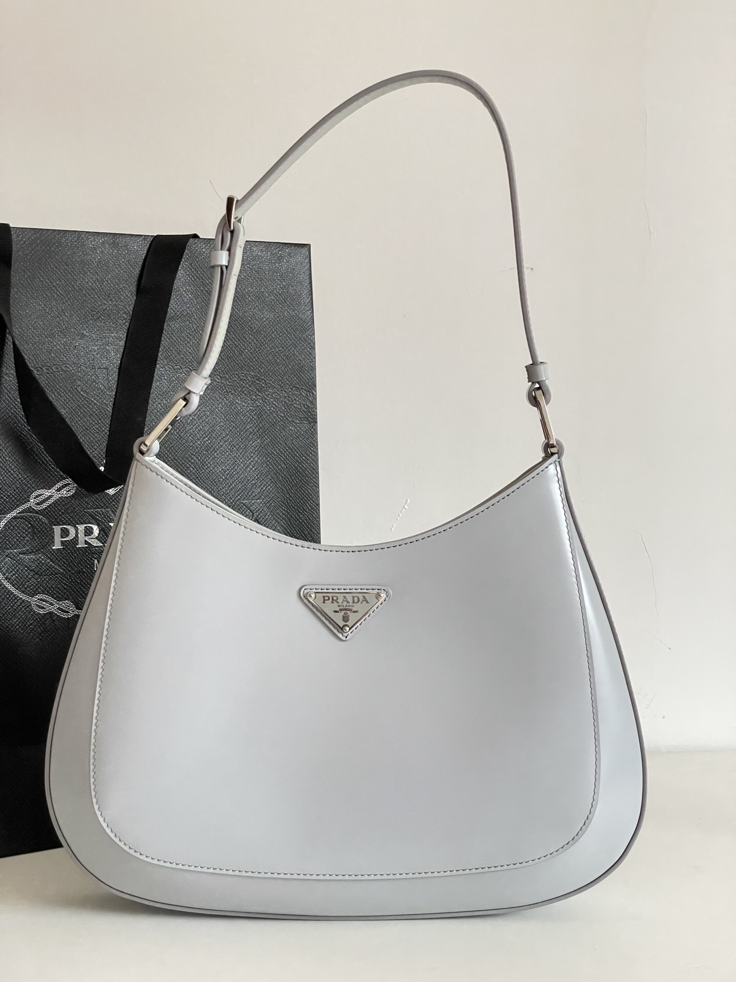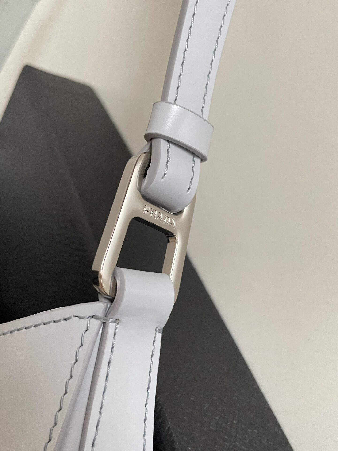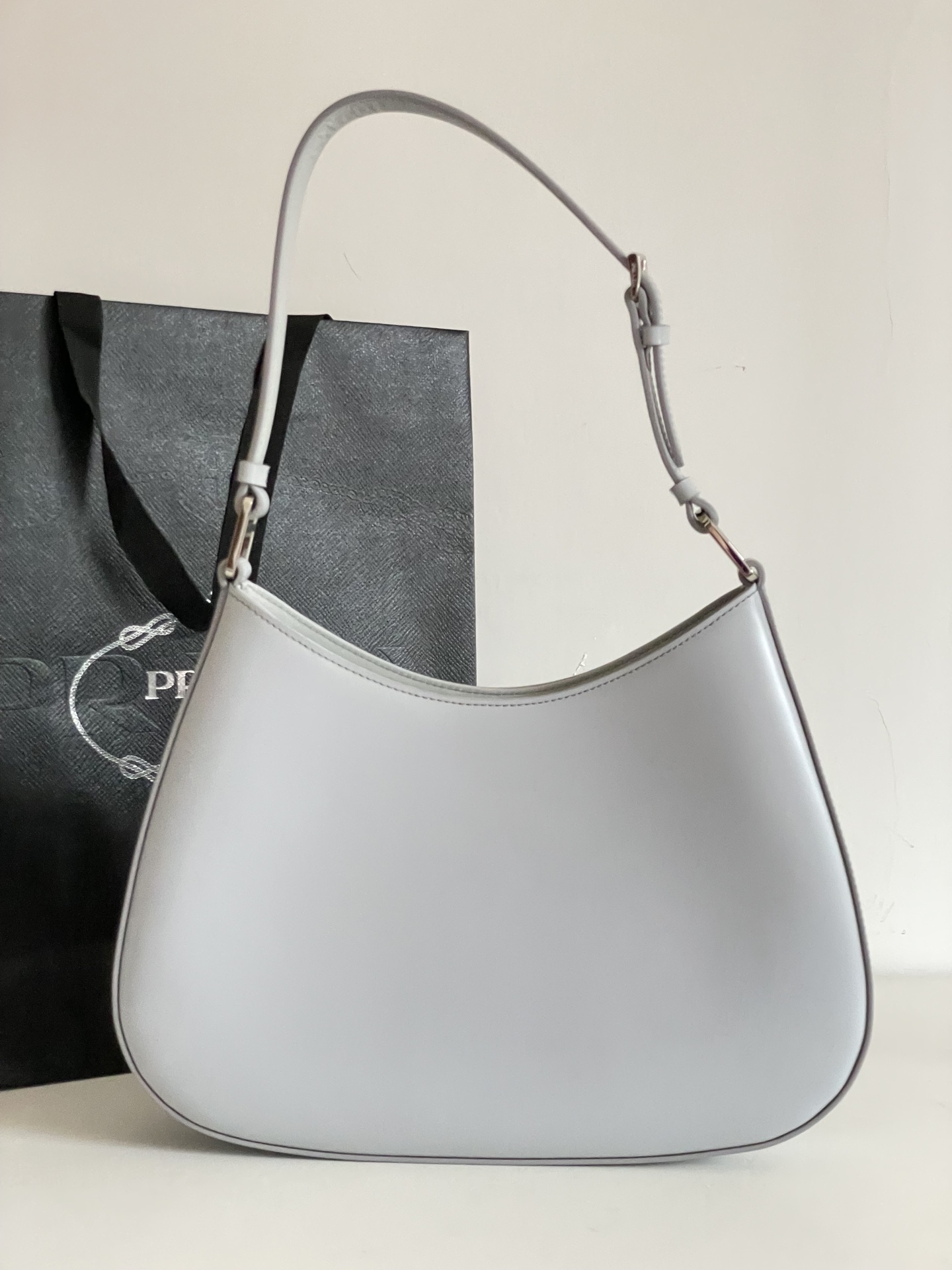 프라다의 클레오 대형 핸드백은 세련된 디자인과 실용성을 겸비한 아이템입니다. 부드러운 그레이 색상의 소가죽으로 제작되어 고급스러운 질감을 자랑합니다.