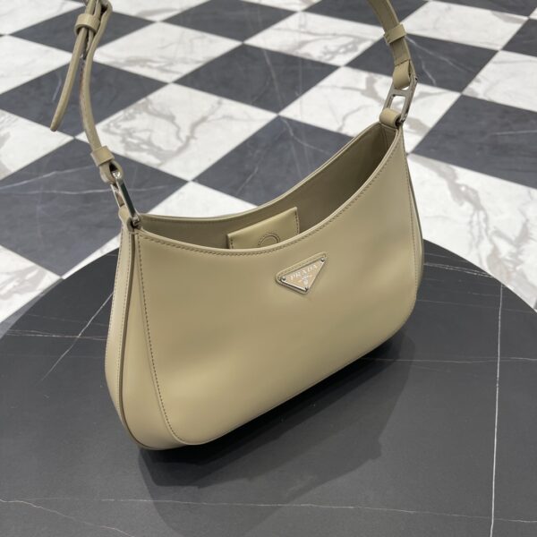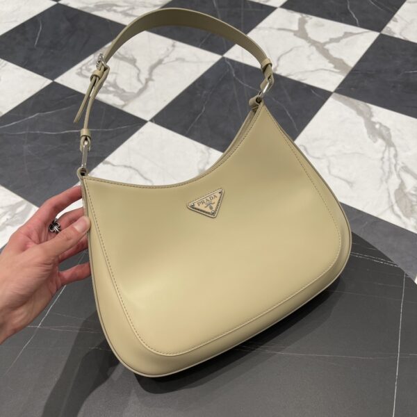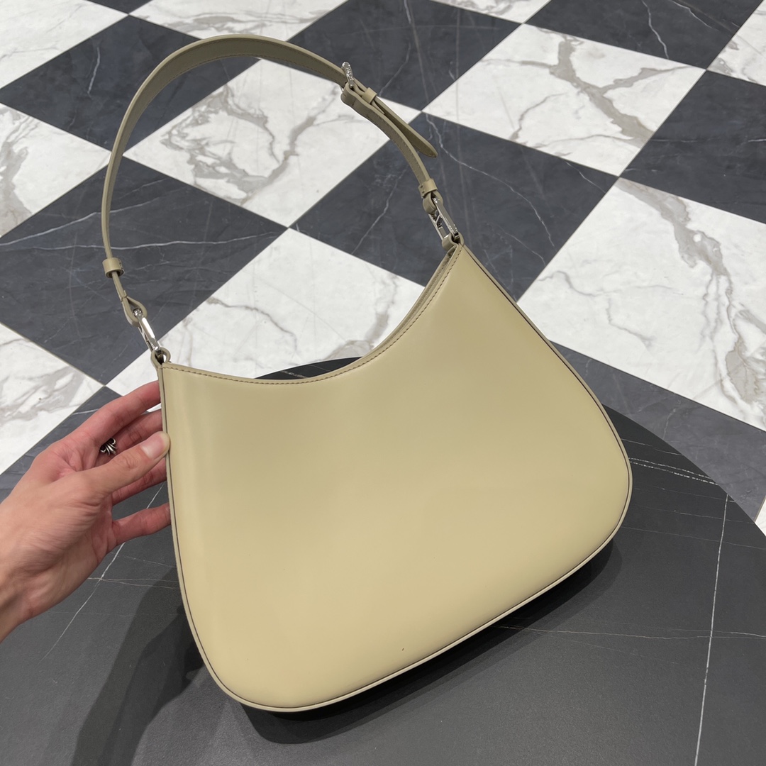 프라다의 2021 봄/여름 컬렉션에서 선보인 클레오 대형 핸드백입니다. 독특한 기울기 구조가 돋보이는 이 HOBO 스타일의 가방은 간결한 실루엣으로 세련된 매력을 더합니다.
