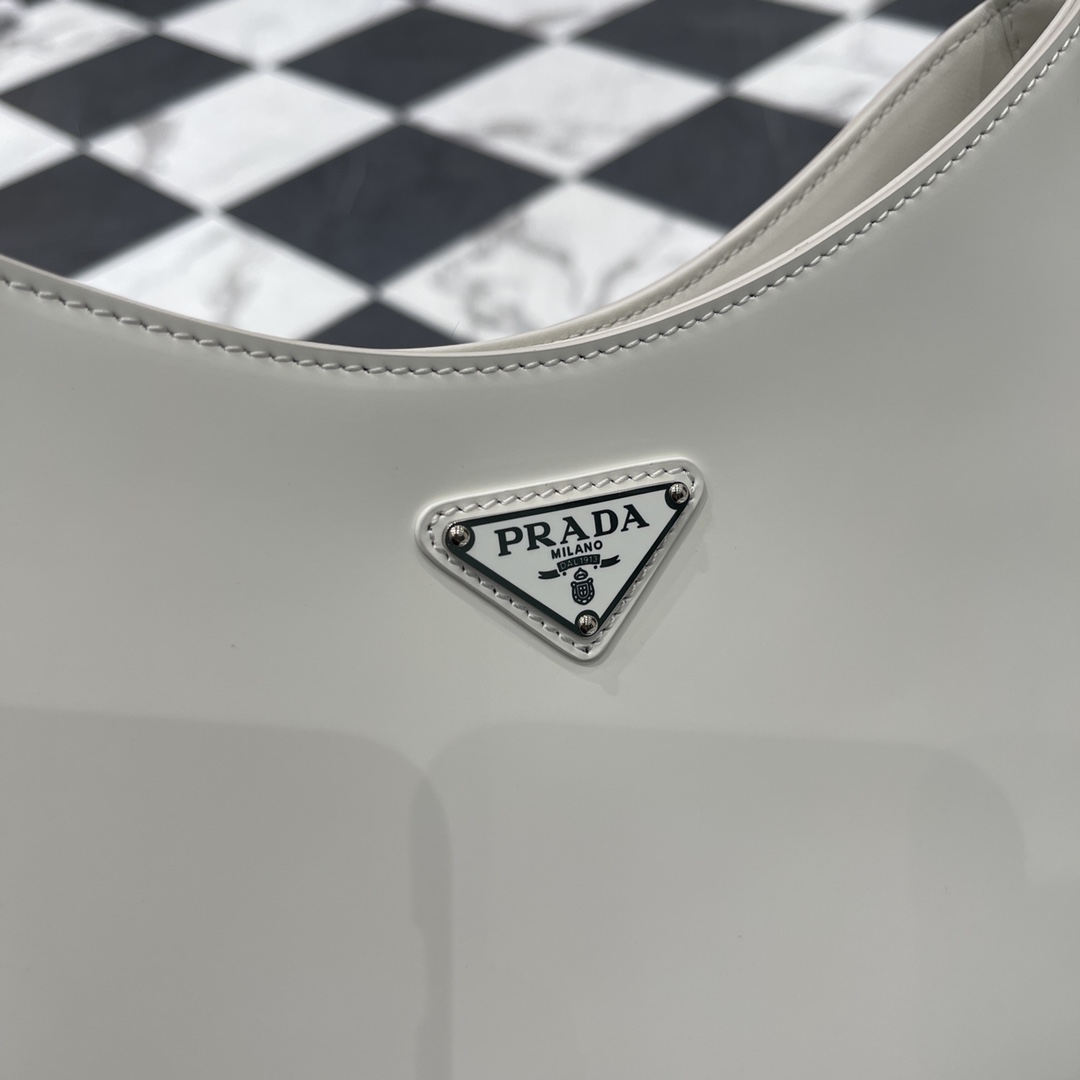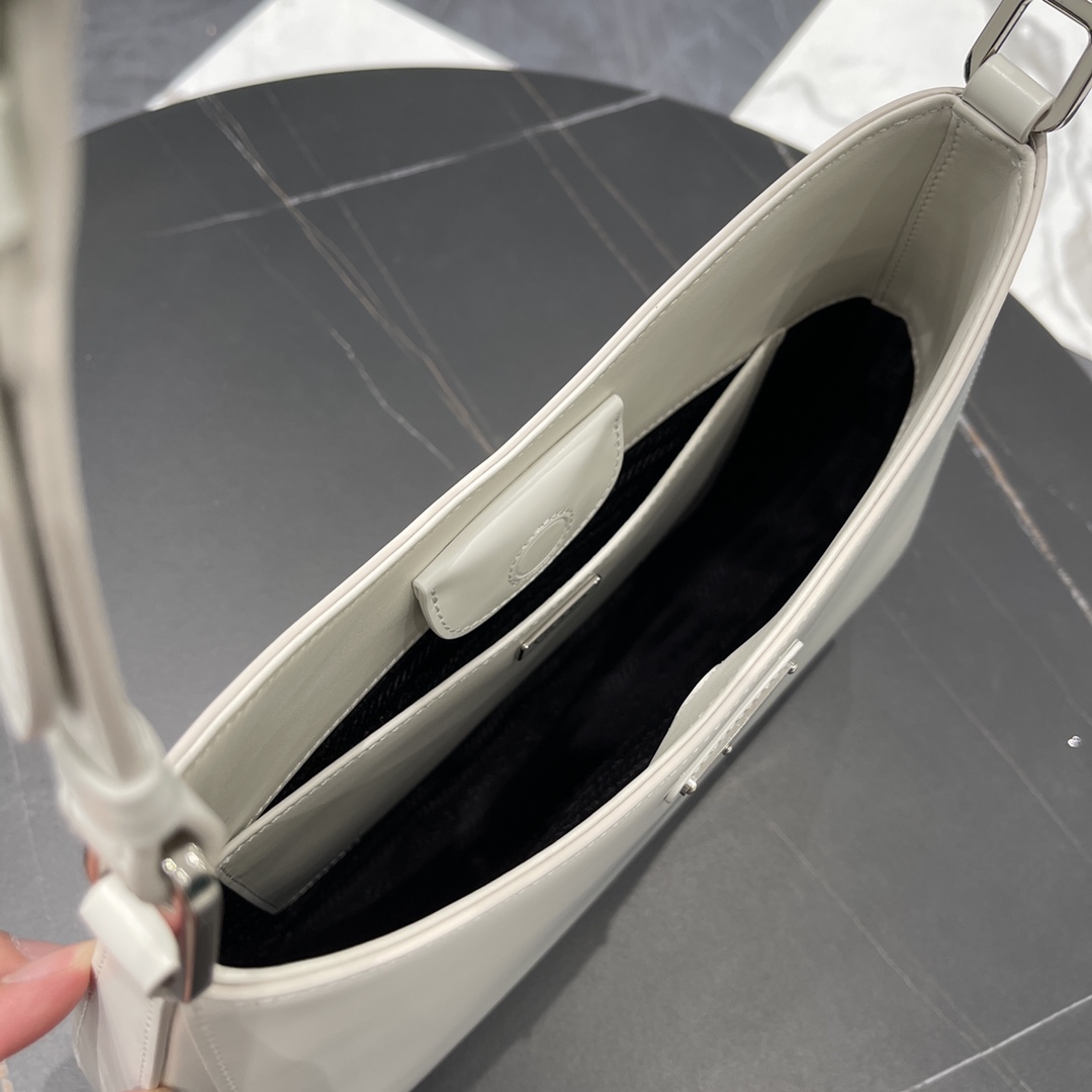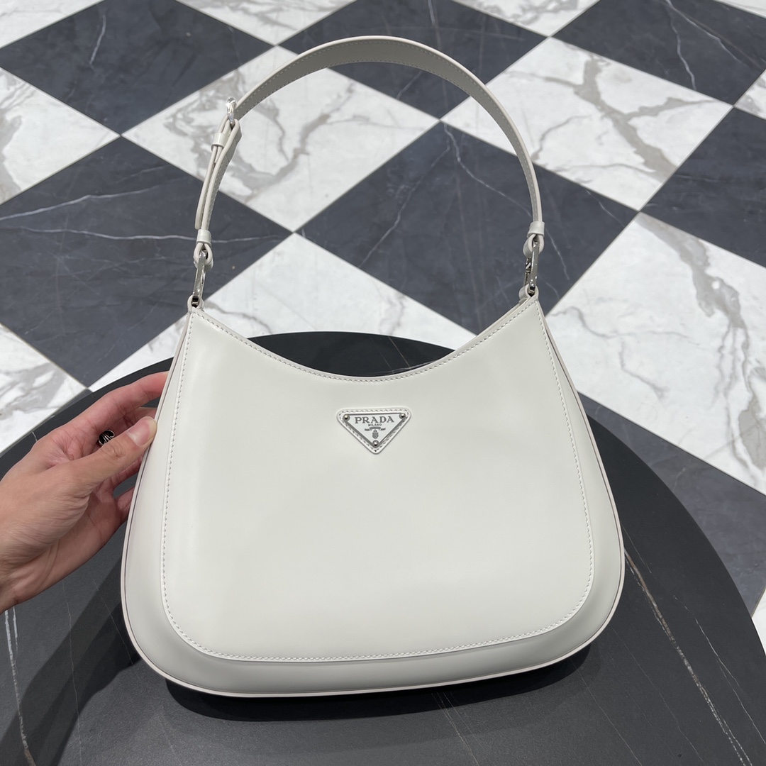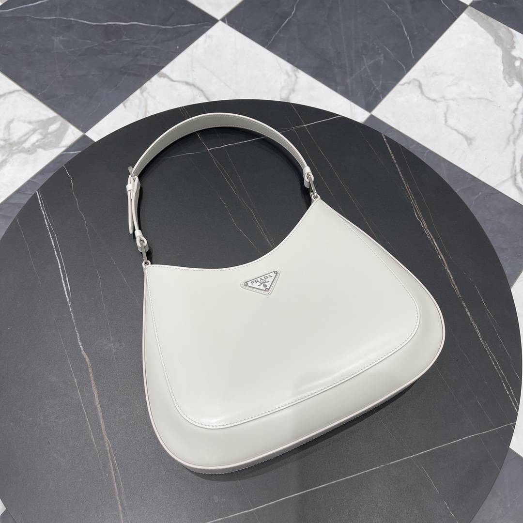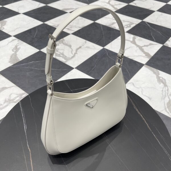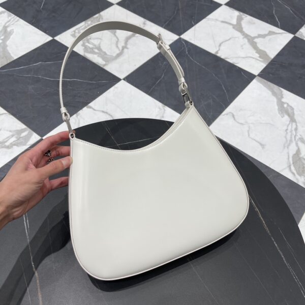 프라다의 2021 봄여름 컬렉션에서 선보인 클레오 대형 핸드백입니다. 독특한 경사 구조가 돋보이는 디자인으로, 간결한 실루엣이 매력적입니다.