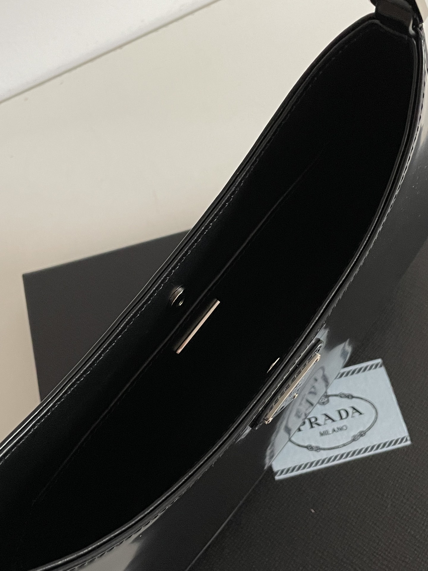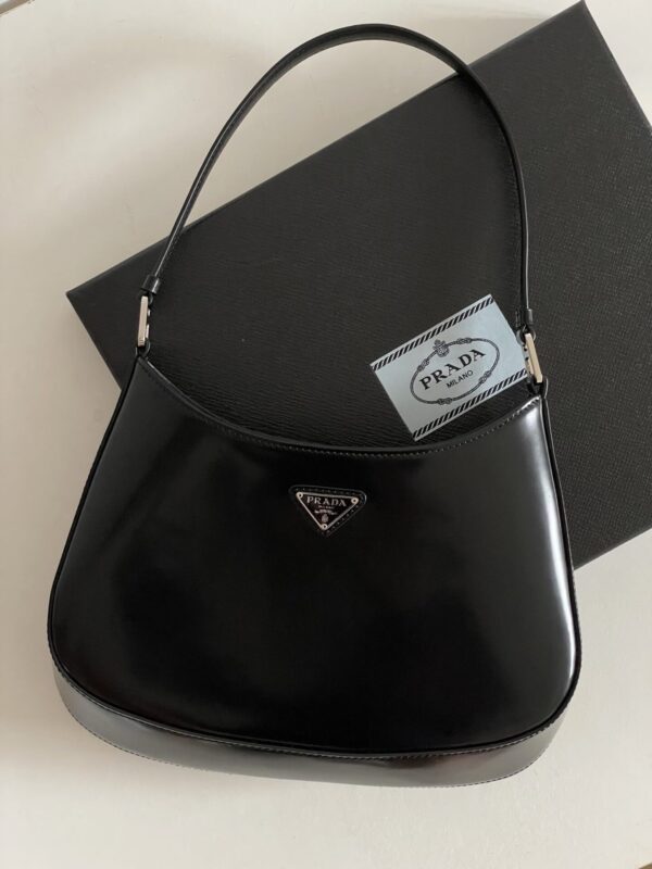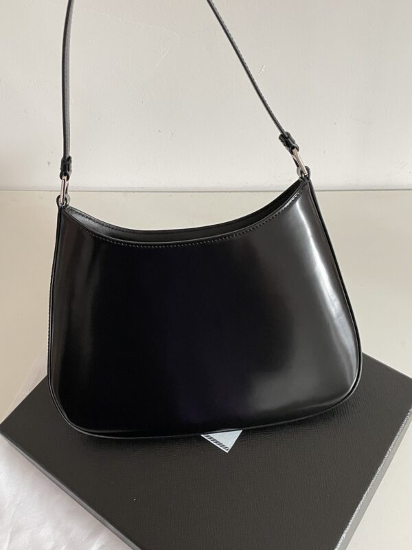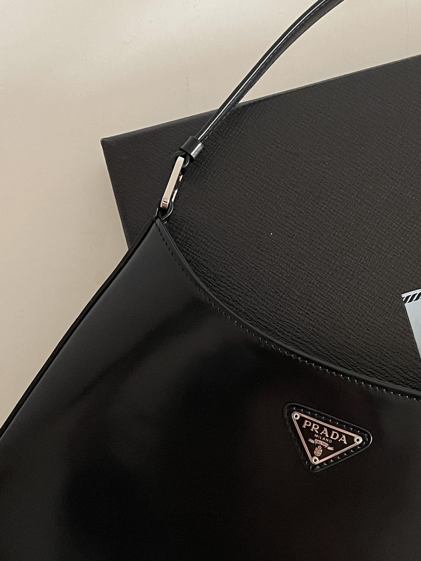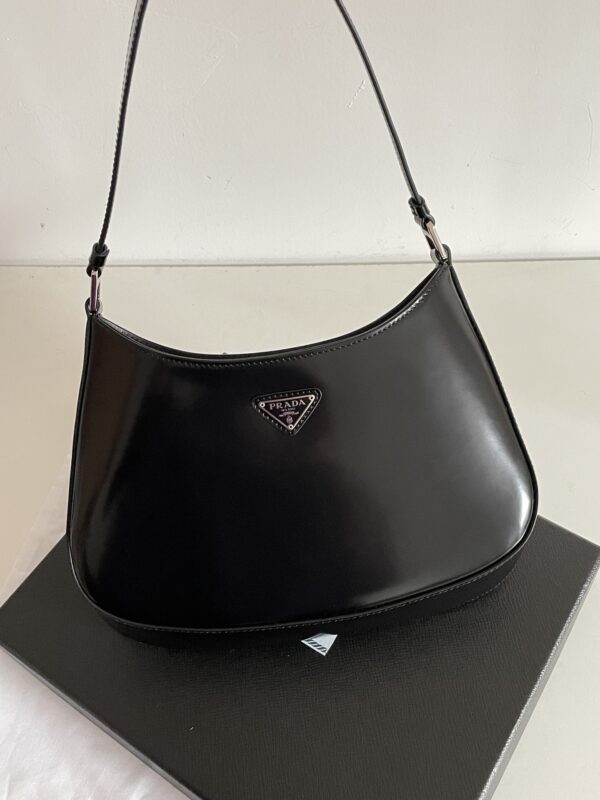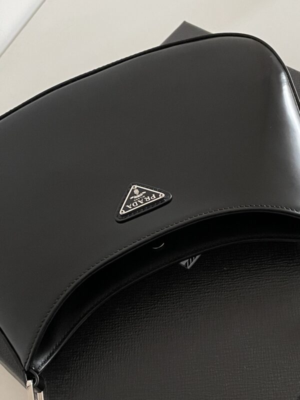 프라다의 클레오 미니 블랙 Hobo 백은 고급 소가죽으로 제작되어 부드러운 질감을 자랑합니다.