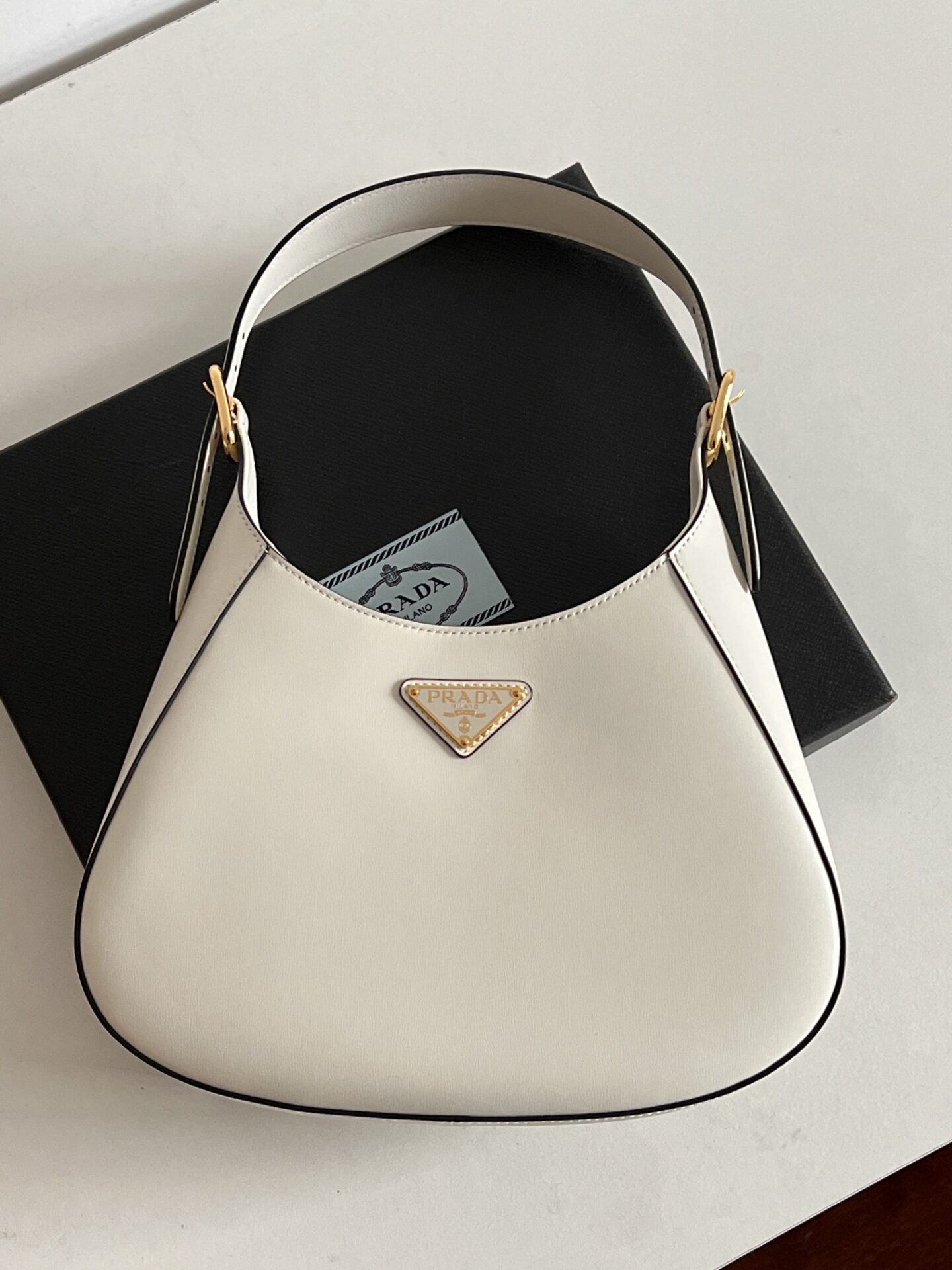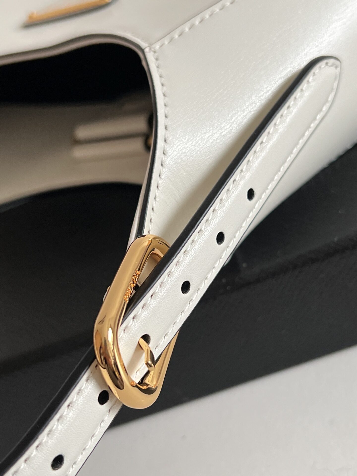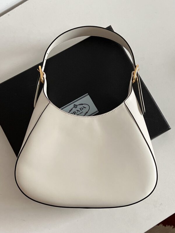 프라다 클레오 백은 가을과 겨울에 두꺼운 옷과 함께 착용하기에 적합한 사이즈로, 여유로운 공간을 제공하여 편안한 착용감을 선사합니다.
