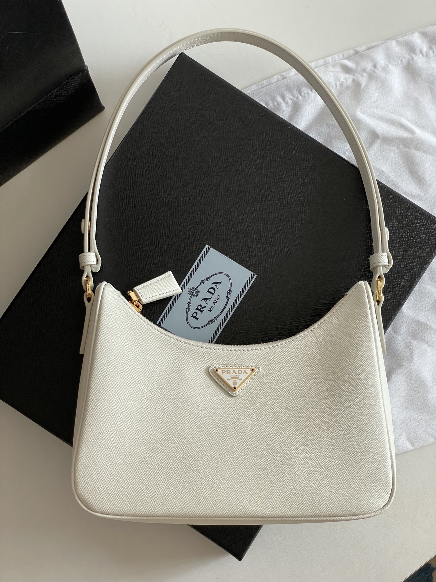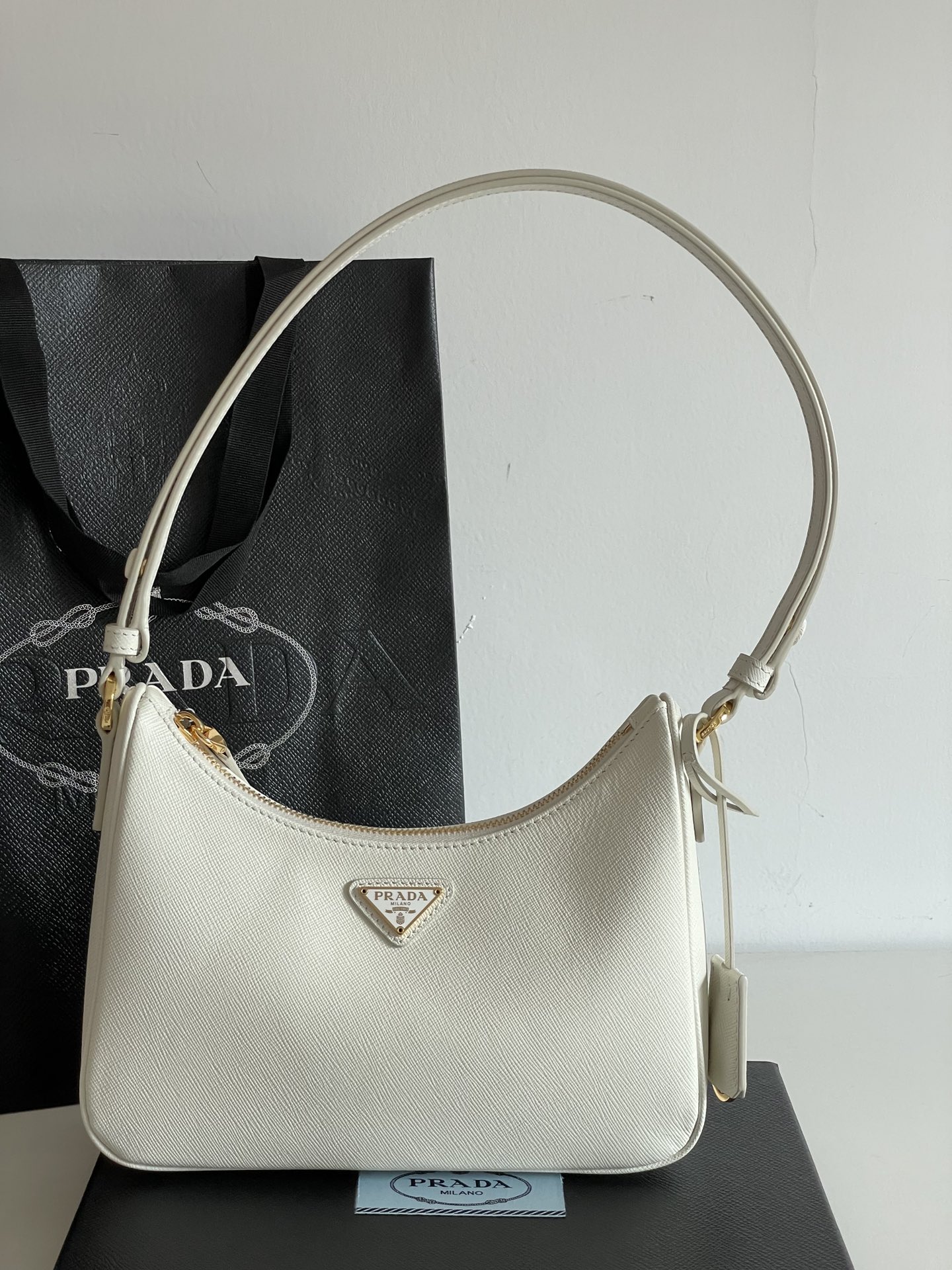 여름의 화려함을 담은 프라다 호보백입니다. 다채로운 색상으로 구성되어 있어 어떤 룩에도 잘 어울립니다.