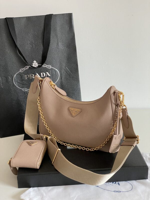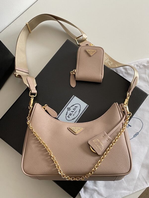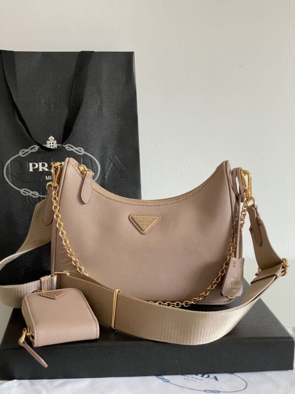 프라다의 호보백은 고급 소가죽으로 제작되어 부드러운 질감을 자랑합니다.