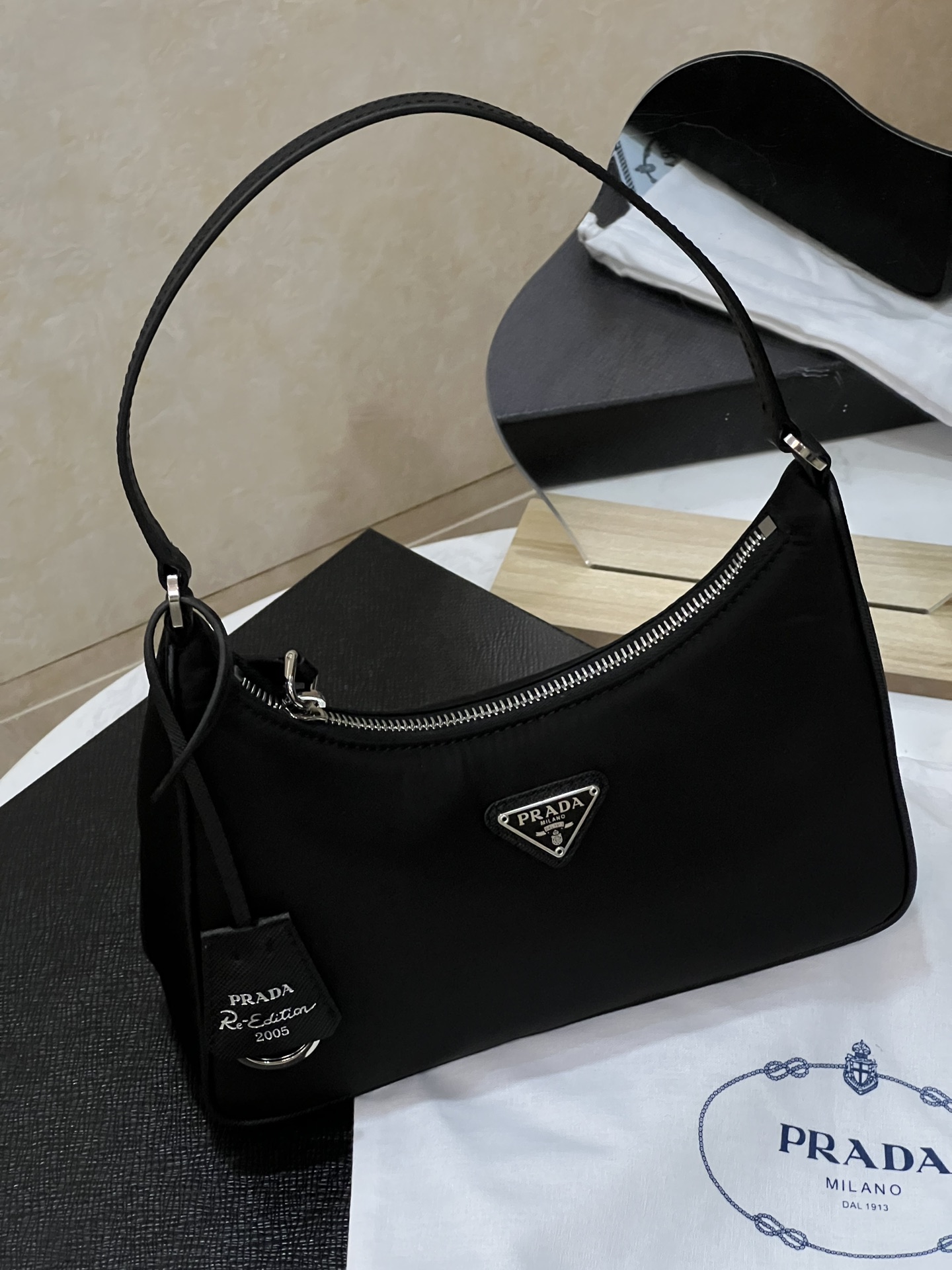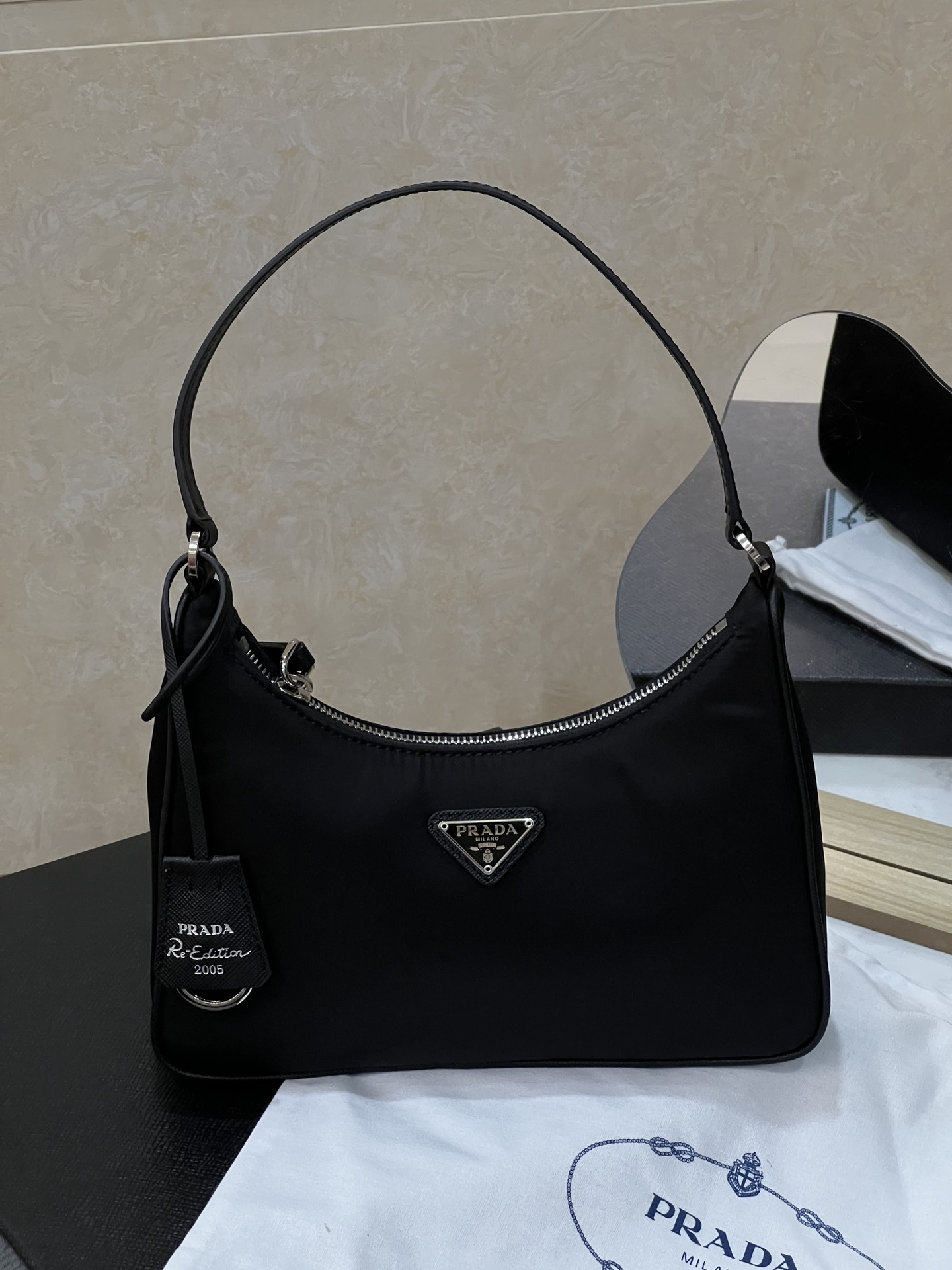 프라다의 호보백은 2005 모델로, 독특한 디자인과 실용성을 겸비한 아이템입니다.