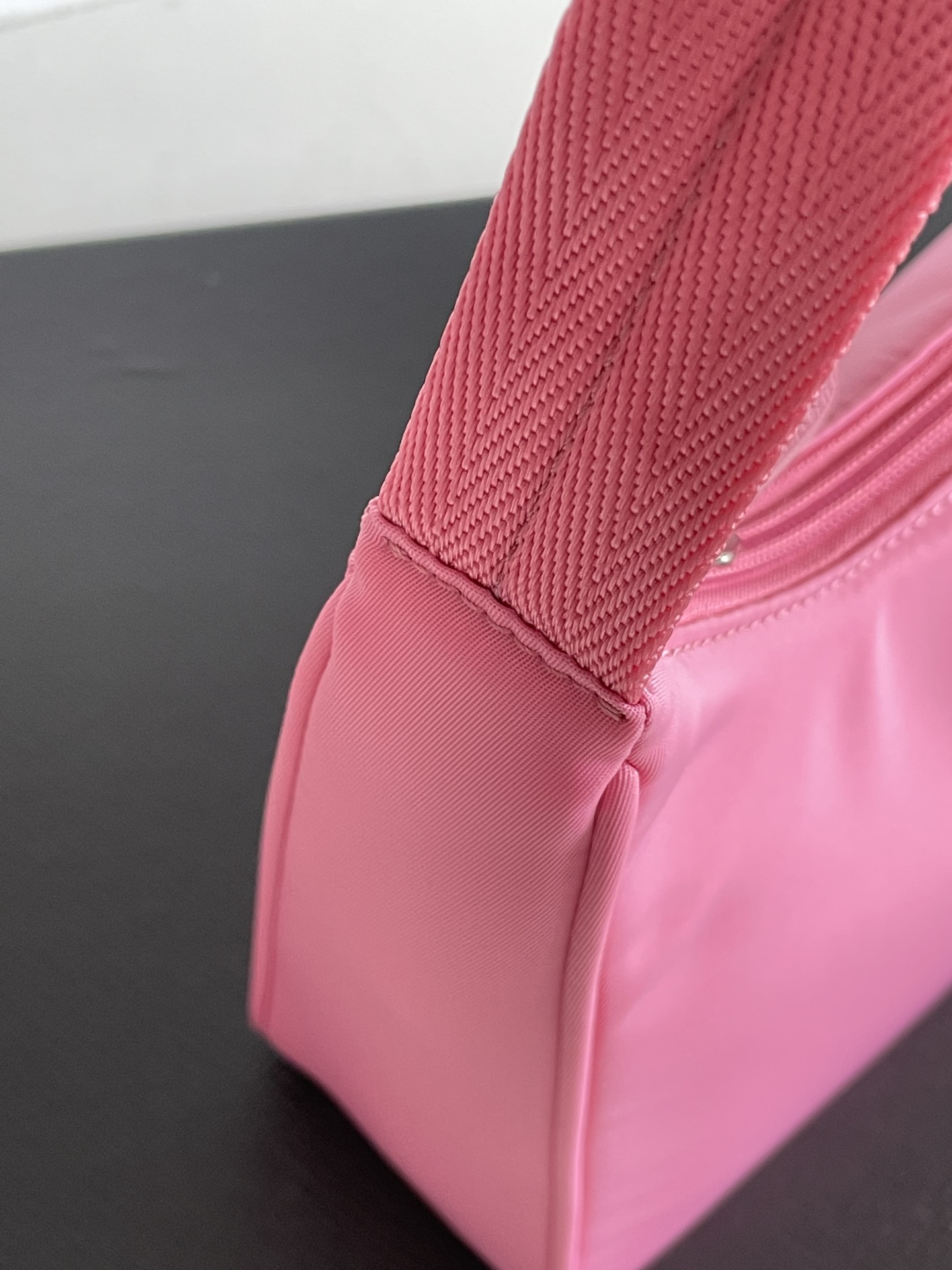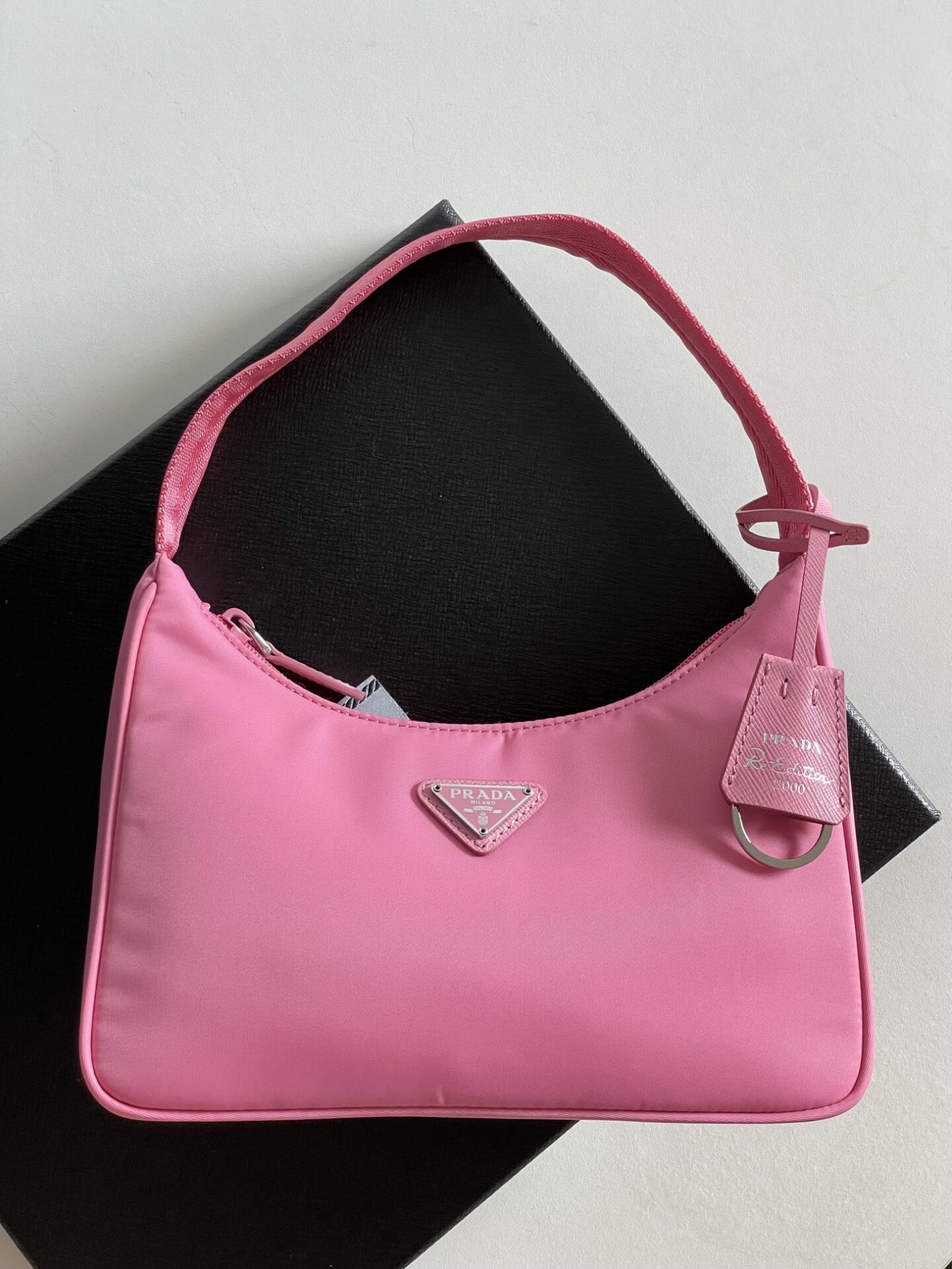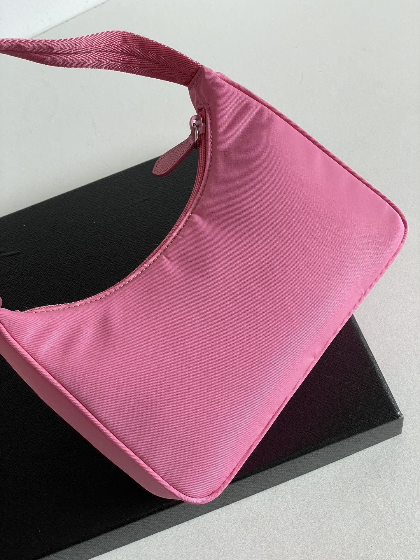 부드러운 나일론 소재로 제작된 프라다 호보백입니다. 가벼운 무게감과 부드러운 질감이 특징으로, 편안한 착용감을 제공합니다.
