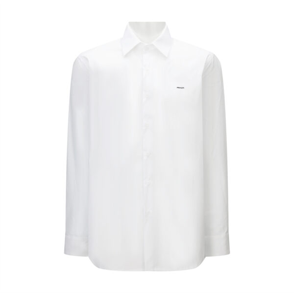 프라다의 스몰 로고가 특징인 나일론 소재의 셔츠입니다. 일상복과 레이어드용으로 적합합니다.
