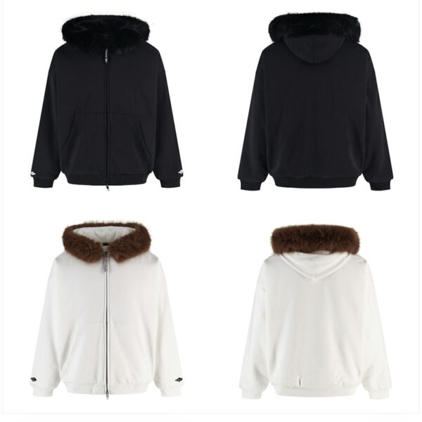 - 발렌시아가 플러피 후드 집업 자켓은 캐주얼한 아우터로 활용됩니다.