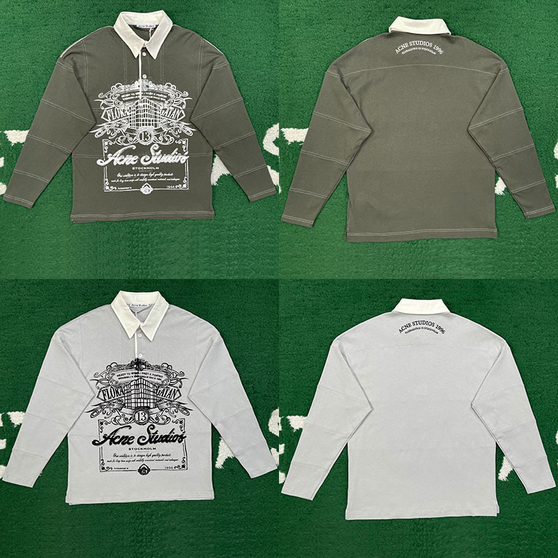 - 아크네의 폴로 티셔츠로, 아트워크 프린트와 스티치 디테일이 특징입니다.