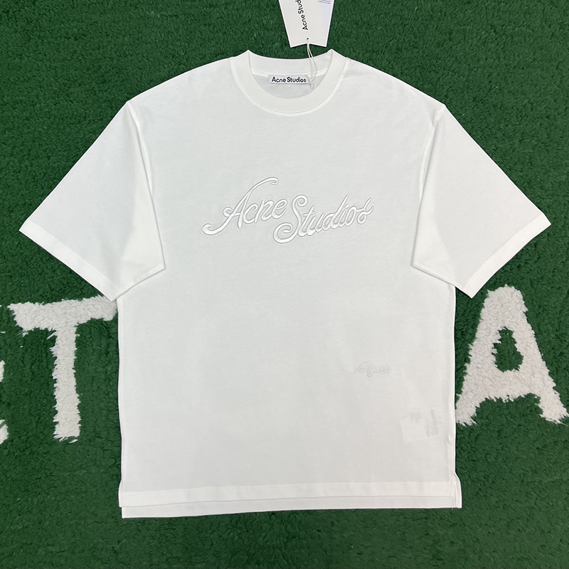 아크네의 로고 반팔 티셔츠입니다. 깔끔한 디자인으로 다양한 스타일에 활용 가능합니다.
