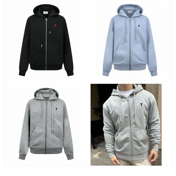 - 아미의 후드 집업으로 상의 용도로 제작된 의류 제품입니다.