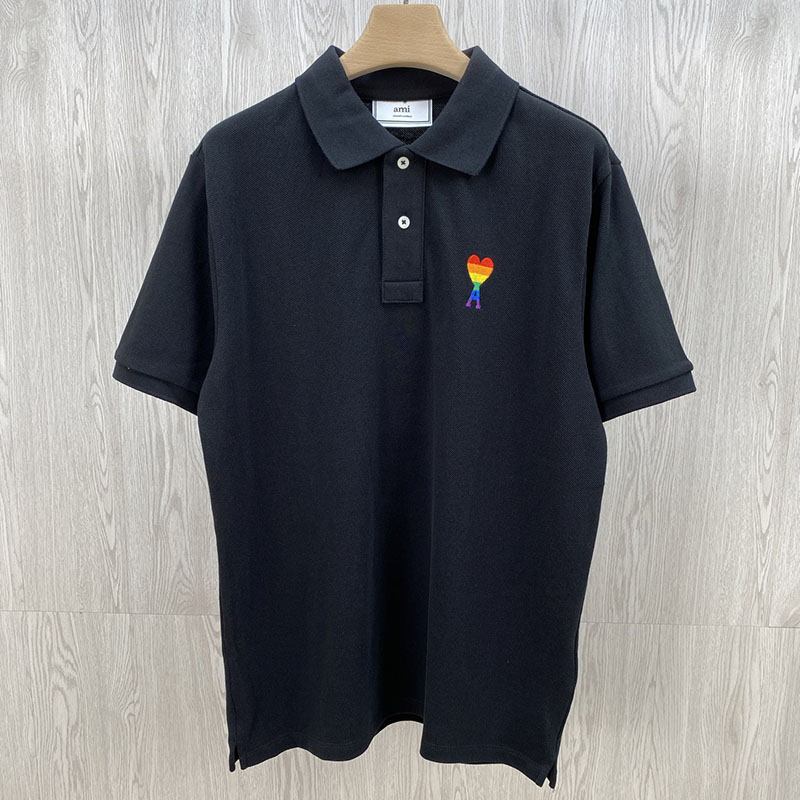 - 아미 레인보우 로고 반팔 폴로 셔츠는 캐주얼 상의로 사용됩니다.