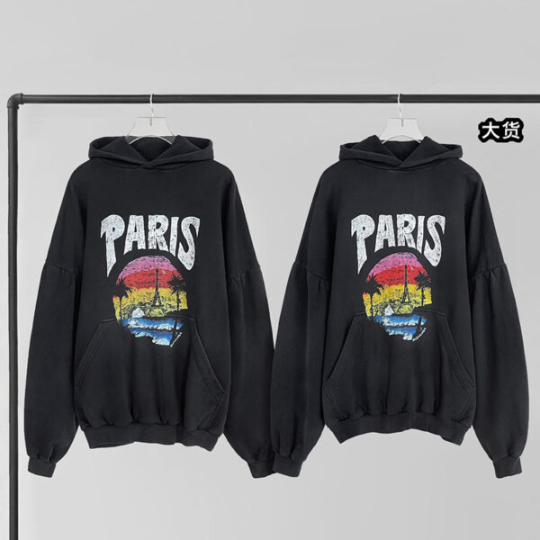 - 발렌시아가 브랜드의 파리 오버사이즈 라운드 후디로, 캐주얼한 상의 아이템입니다.