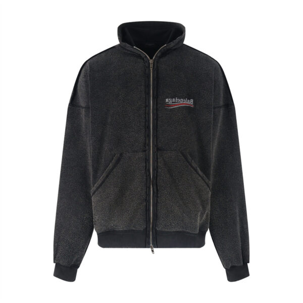 - 발렌시아가 브랜드의 라지 핏 집업 후드로 실용적인 아우터입니다.