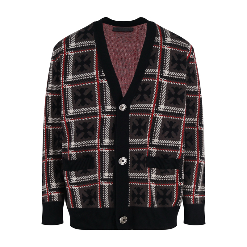 크롬하츠 가디건으로 고급 캐시미어 소재와 플레이드 디자인이 특징입니다. 봄, 가을 간절기 아우터로 활용하기 적합합니다.