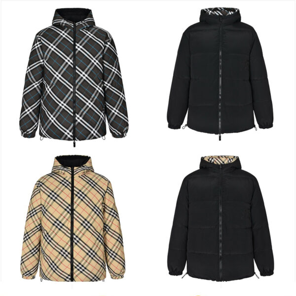 버버리 체크 패턴의 리버서블 다운 패딩 자켓입니다. 뛰어난 보온성을 갖춘 실용적인 겨울 아우터입니다.
