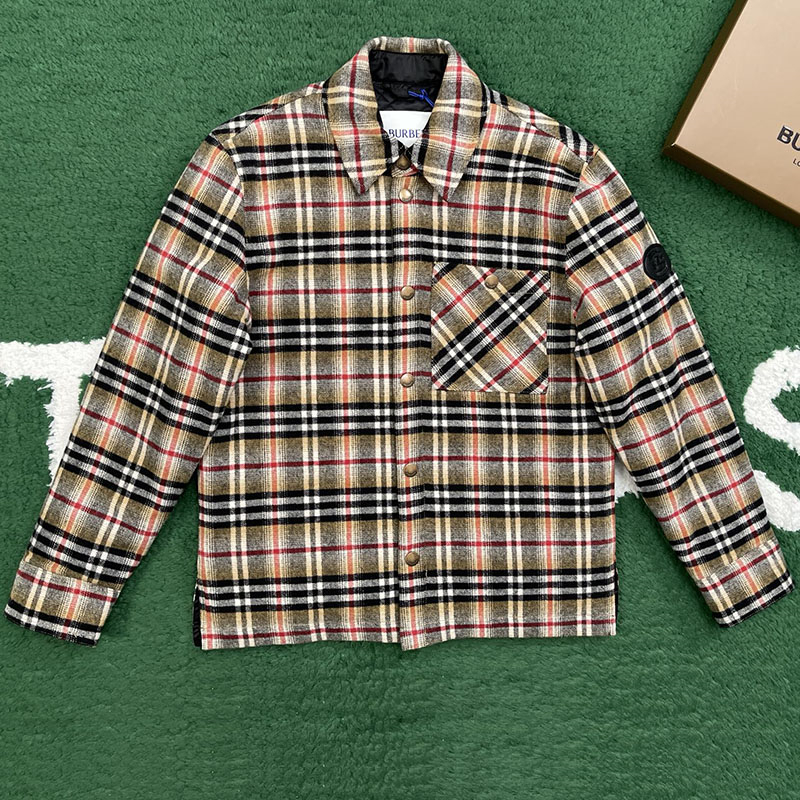 - 버버리 브랜드의 울 체크 오버셔츠로 제작되었으며, 잔디집 디테일이 포함되어 있습니다.
