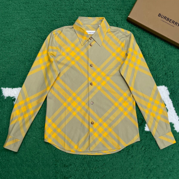 - 체크 패턴과 코튼 소재를 사용한 버버리의 긴팔 셔츠입니다.