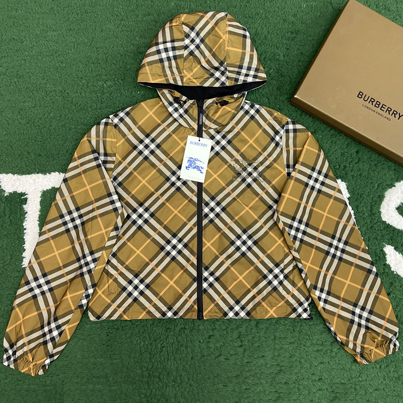 - 버버리 브랜드의 크롭 체크 리버시블 후드 자켓으로 아우터 용도로 사용됩니다.