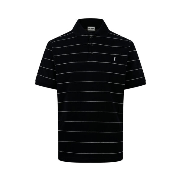 생로랑의 스트라이프 폴로 셔츠입니다. 깔끔한 디자인으로 다양한 착장에 활용하기 좋습니다.
