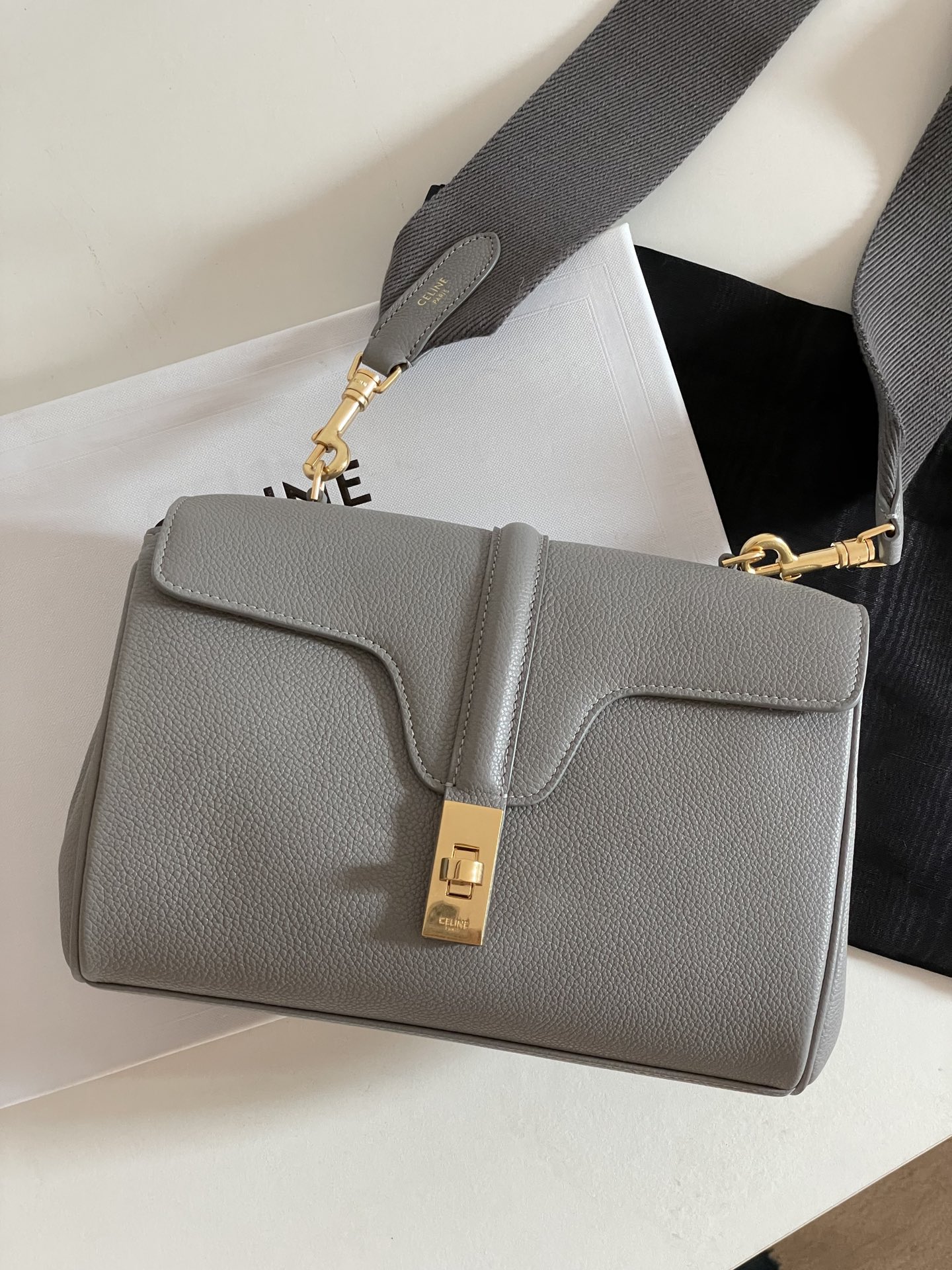 부드러운 소가죽으로 제작된 Teen Soft16 숄더백입니다. 고급스러운 그레이 색상과 함께 클래식한 디자인이 돋보입니다.
