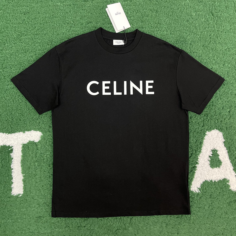 셀린느의 로고가 새겨진 루즈핏 반팔 티셔츠입니다. 편안한 착용감으로 데일리 룩에 적합합니다.