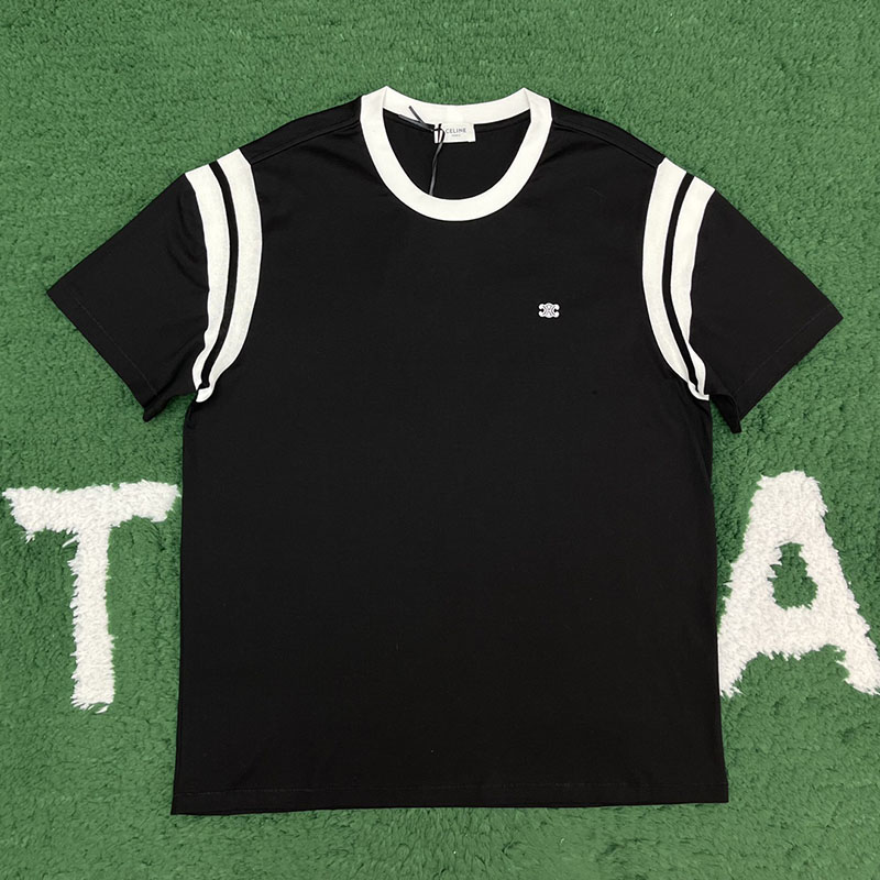 셀린느 브랜드의 반팔 티셔츠로 캐주얼한 데일리룩에 적합합니다. 레귤러 핏과 트리옴프 로고가 특징인 상품입니다.