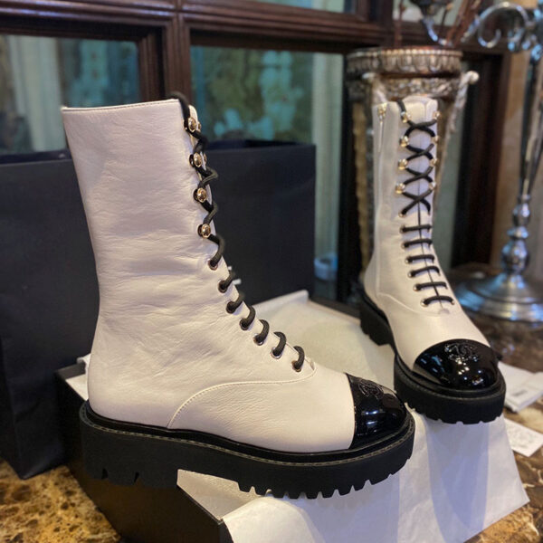 - 샤넬 레이스업 워커 부츠는 실용적인 디자인으로 일상 착용에 적합한 신발입니다.