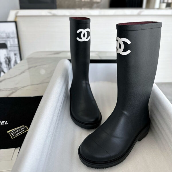 - 샤넬 브랜드의 레인 러버 부츠로 비 오는 날 신기 적합한 신발입니다.