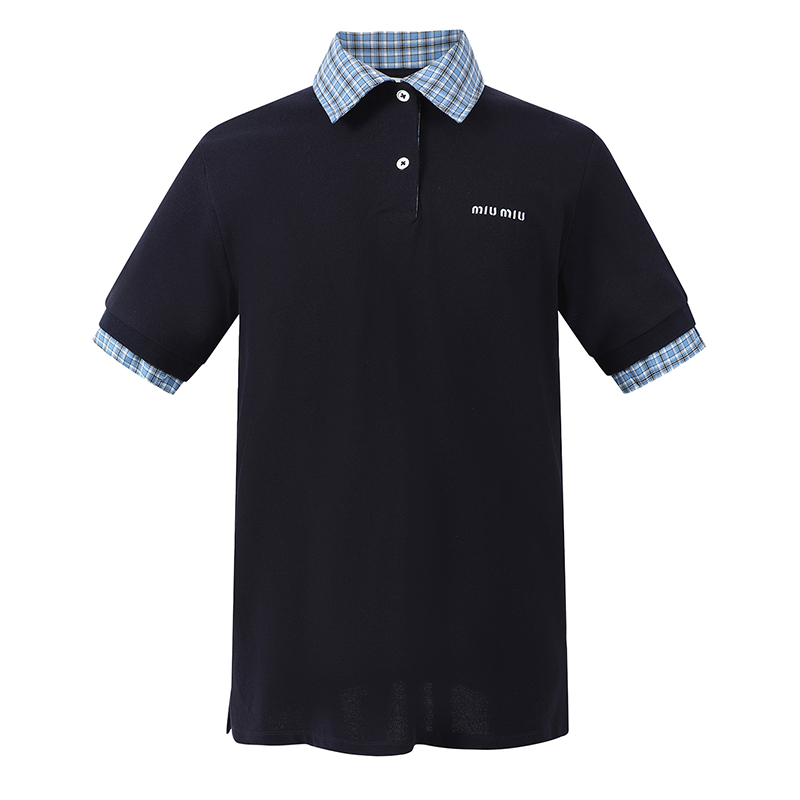 - 미우미우 체크 트림 코튼 피케 폴로 셔츠는 캐주얼한 상의 아이템입니다.