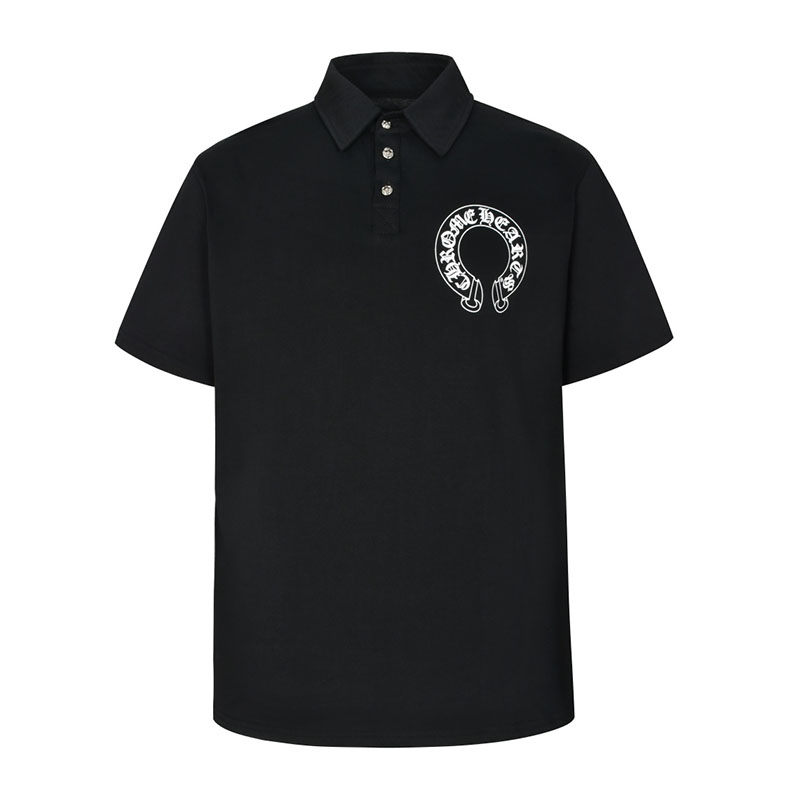 크롬하츠 홀스슈 로고 버튼 반팔 폴로 셔츠입니다. 캐주얼한 상의로 활용할 수 있는 디자인입니다.